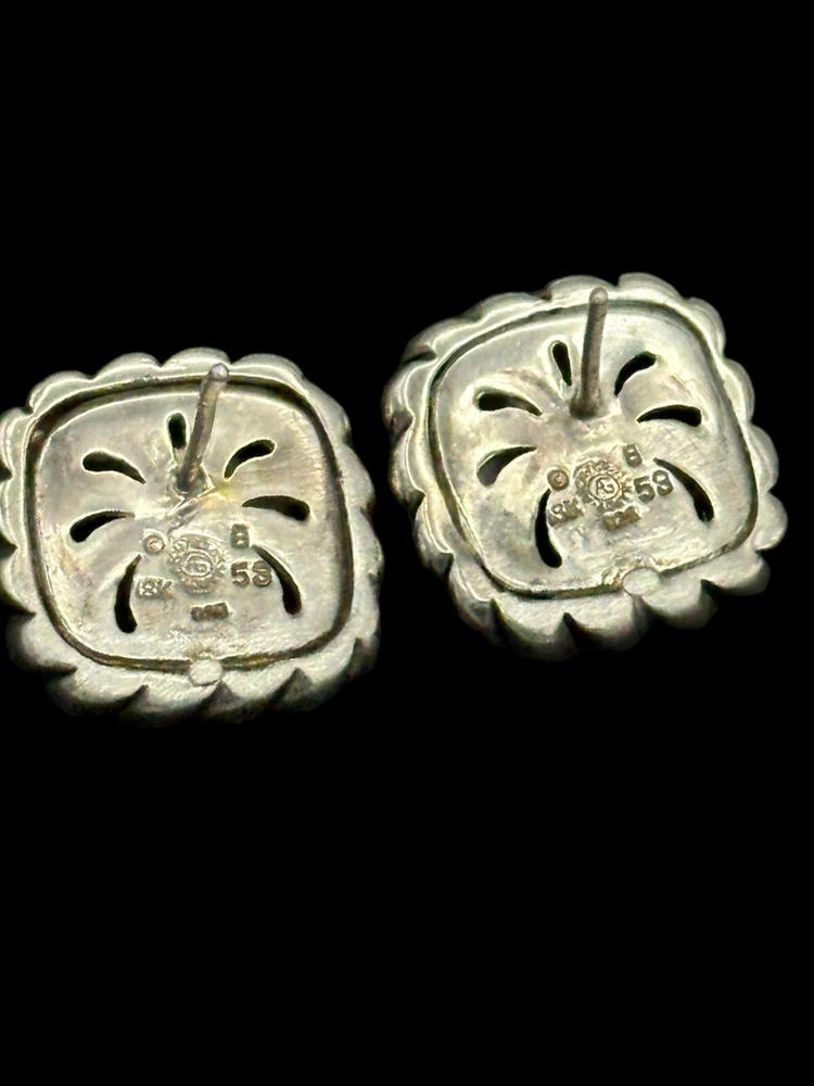 Stunning earrings purchased at an estate sale. They are in very good condition, yet the omega closure was removed and earring backs replaced. Please review pictures or contact me with any questions. General Items that are pre-owned will show normal signs of use/wear associated with the age of item. Cleaning may be required based on personal preferences. General condition will be documented in the listing as well as any notable flaws. As the items I sell are mostly pre-owned or vintage it is not possible to outline the background or provenance of an item. Similarly, it is not possible to conclude if the item has always been in a smoke or pet free environment or if any repairs such as replacement stones have been made. I generally do not repair items. If I do it is noted in the description. Sizes and measurements are approximate and I do my best to be accurate. Weights will be shown on a scale when appropriate. Colors may appear different due to variances in monitor etc. I do my best at representing the color in the photos associated with the listing. Photos are of the actual item being sold and document condition better than any description. Some pictures may be zoomed in to show detail of the item. If you require additional information please let me know prior to buying or bidding. Payment, Shipping & Returns Payments are due within 3 days. If you need more time please contact me. If you desire combined shipping, please do not pay until you receive a combined invoice. In the case where you paid for one item already, please contact me so I can combine manually. Buyer selects the shipping method as defined in the listing. Jewelry shipped 1st class will generally be packaged in a jewelry box and padded envelope. Priority or other methods will ship in a box. If you desire different shipping service, insurance or signature required please let me know prior to paying. Jewelry over $500 will ship USPS priority mail insured. Please advise if you would like signature required. Items will be shipped within US only. International shipping through Ebay's international shipping program only. Returns accepted when identified in the listing. Lots are sold as-is with no returns. Please contact me with any concerns about your purchase prior to leaving feedback. I will work to resolve any issue that I can control. Question not answered? Please contact me and I'll get back to you as soon as possible. Thank you!