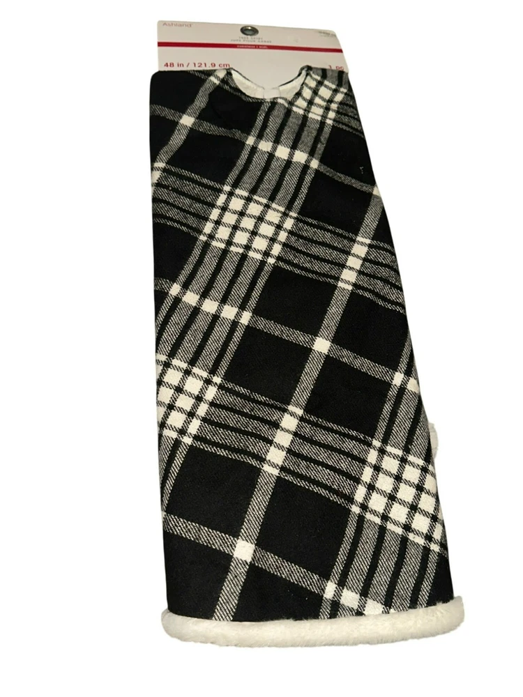 Ashland Holiday Christmas Holiday Tree Skirt Black and White Plaid Fur Trim NWT Size: 48" Condition: Brand new with tags, never used Retail Price: $39.99 Color: Multi Material: Fabric Non-smoking and pet free environment.