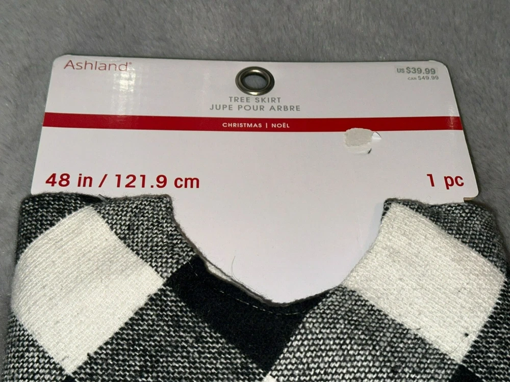 Ashland Holiday Christmas Holiday Tree Skirt Black and White Buffalo Check Fur Trim NWT Size: 48" Condition: Brand new with tags, never used Retail Price: $39.99 Color: Multi Material: Fabric Non-smoking and pet free environment.