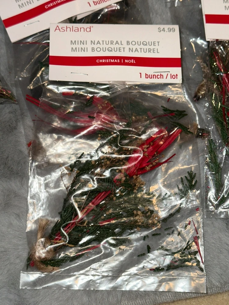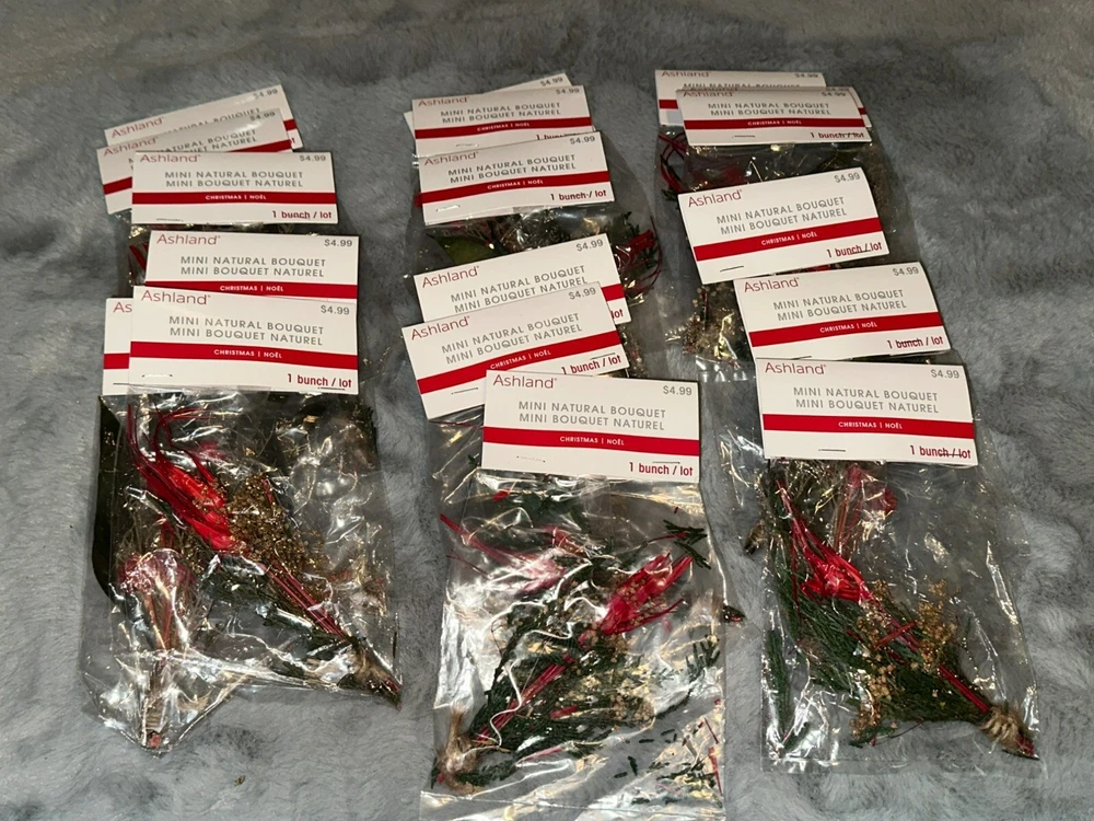 Ashland Mini Nature Natural Christmas Holiday Bouquet - Lot of 18 Bunches Condition: Brand new, sealed and unused Size: 1 mini bunch (includes 8 individual bunches in their own packages) Retail Price: $4.99 each (about $90.00 value total) Color: Green / Red Material: Multiple natural materials These are perfect for any kind of crafting you can imagine -- including as embellishments for gift wrapping. All measurements provided in photos are approximate only. Non-smoking and pet free environment. Fast shipping.