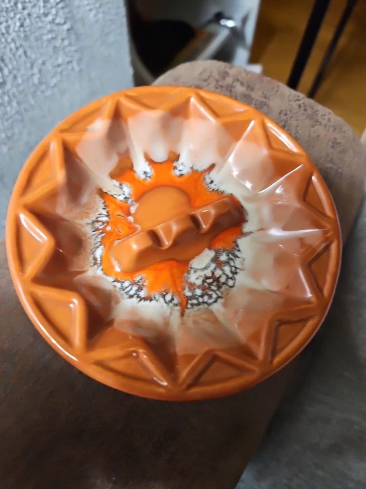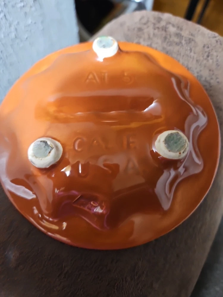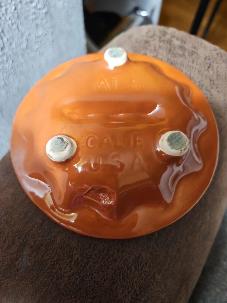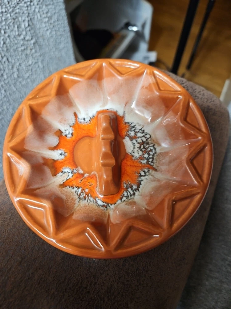 Ashtray California Pottery Mid-Century Orange Designs 70s Retro Bohemian Marked AT 5 California USA