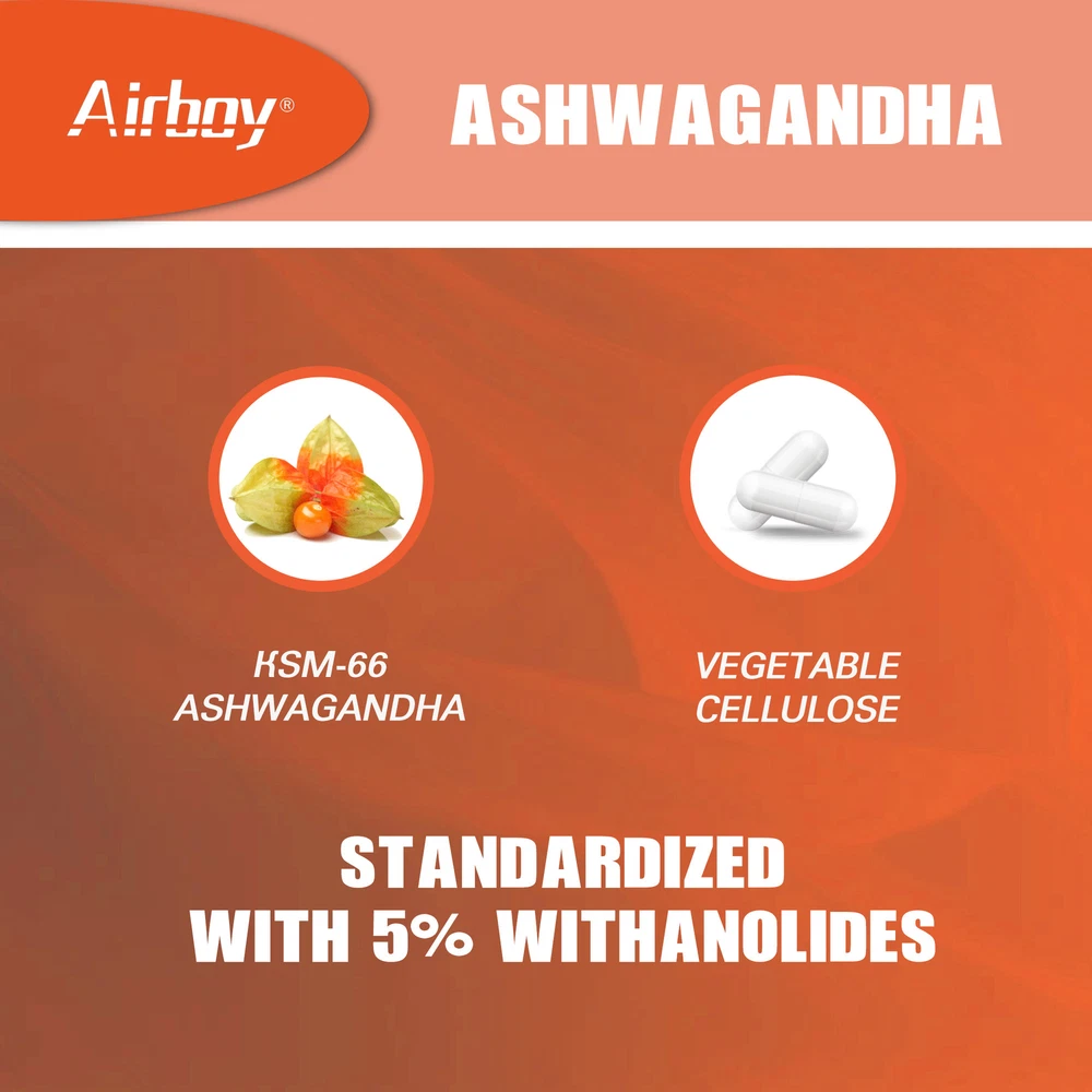 Effects: Emotional Support, Stress & Anxiety Relief Ingredients: Ashwagandha, Black Pepper Directions: Take 2 capsules once daily after a meal. Shipping: Ships within 48 hours on working days. Shelf life: 2 years Description: Mood Enhancer: Ashwagandha helps support a healthy stress response and maintain healthy cortisol levels, supporting positive mood and memory. Ashwagandha capsules also contain BioPerine, clinically proven to enhance nutrient absorption. Supports Energy: Stay energized during stressful times with lasting energy and vitality. Ashwagandha supports occasional insomnia by promoting deep relaxation to help you get the rest you need. Premium Product: Vegetarian formula. Contains no gluten, dairy, soy, corn or nuts. Document