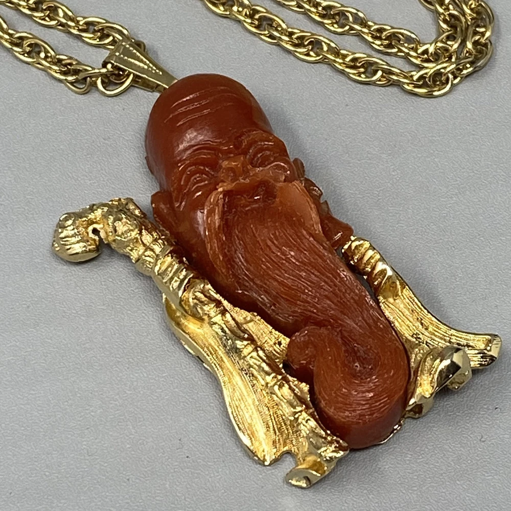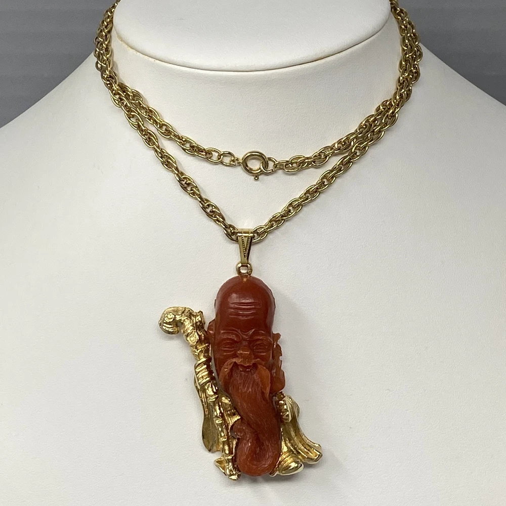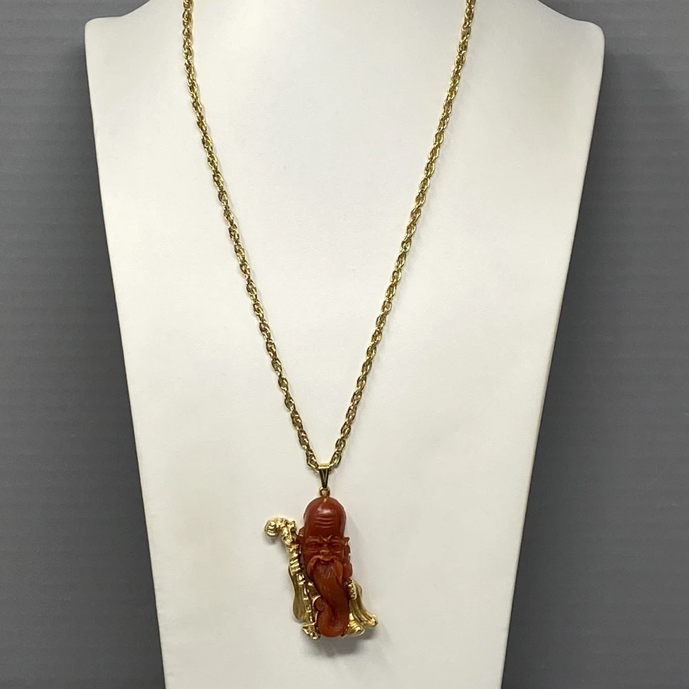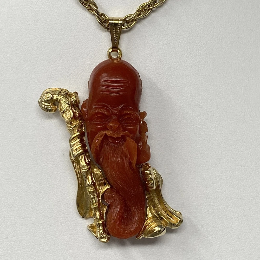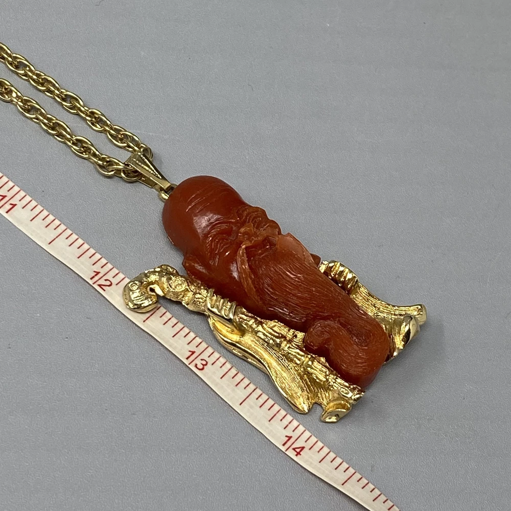 Asian Pendant Necklace Brown Orange Resin Old Man Beard Gold Tone Chain Cane 24" Sizes are approximate and may vary slightly Items may be tested with the Presidium Gem Tester and/or acid tested to ensure accuracy of stones & precious metals. BUY MORE SAVE MORE!! 20% off three or more jewelry items. Items must be purchased/paid in the same order (discount automatically applied during checkout). Not able to combine with any other coupons, promotions or best offers. CHECK BACK OFTEN AS WE LISTE NEW ITEMS DAILY! FOLLOW OUR STORE TO RECEIVE AUTOMATIC UPDATES! SHIPPING POLICY Most jewelry items ship in a small jewelry box for protection and easy gift giving. Fast shipping (within 24 hours M-F). Combined shipping for jewelry items should automatically adjust during checkout. If it does not, reach out to us immediately and as long as the orders have not shipped, we can combine and review for partial refund.