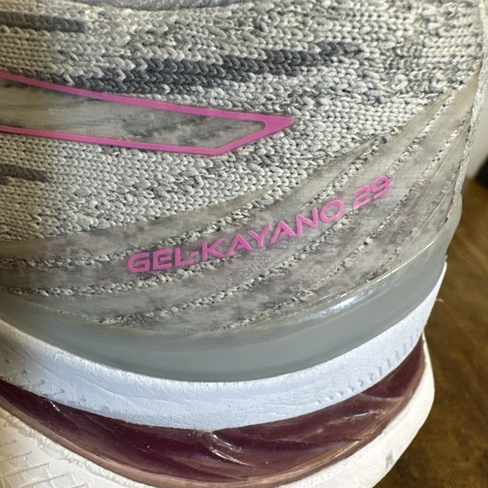 Elevate your running game with these Asics Women's Gel Kayano 29 sneakers in size 10. Designed with comfort and breathability in mind, these shoes feature a synthetic upper material, lace-up closure, and a low-top shoe shaft style. The rubber outsole material provides traction and durability, making them suitable for all seasons. These gray sneakers with ASICS logo accents are perfect for casual occasions and running & jogging activities. The ASICS GEL product line ensures maximum comfort and support for your feet. Made in Indonesia, these athletic shoes are a great addition to your sports theme wardrobe.