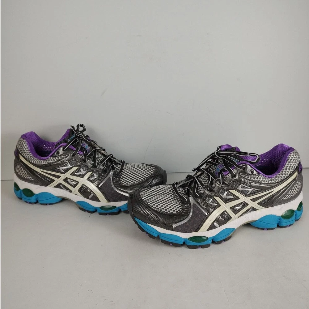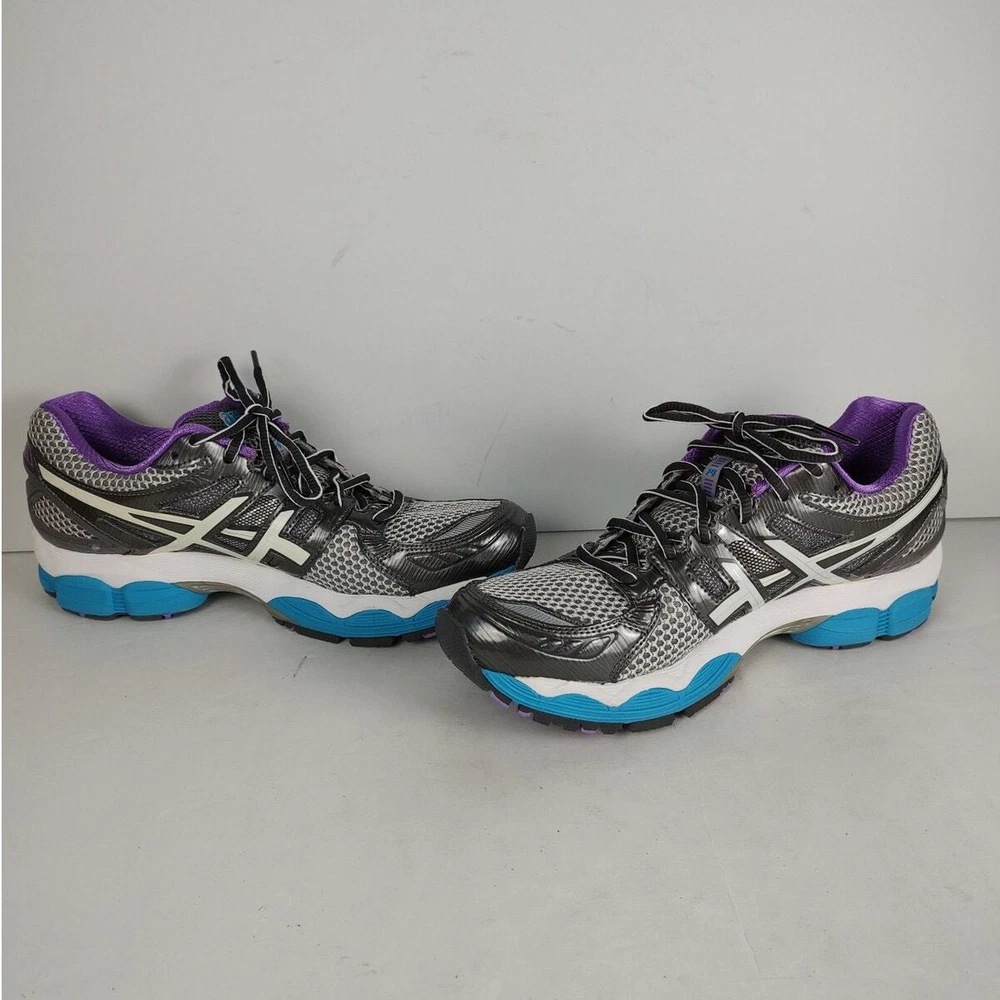 Asics Gel-Nimbus 15 - Grey/Purple/Blue Asics retro active casual running shoes, womens size 9. Theyre in like new condition, not worn at all Tread is unworn Theyve been thoroughly cleaned before listing Please reference photos before purchasing