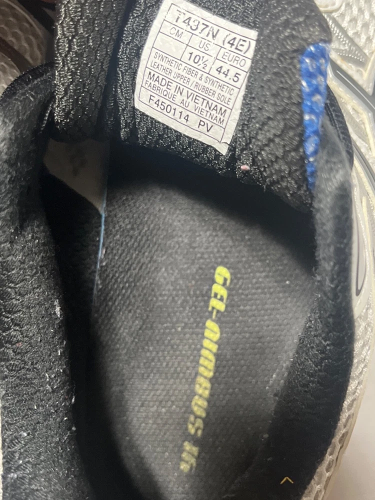 Elevate your active and casual wear with these Asics Gel Nimbus 16 T437N running shoes. The shoes feature a lace-up closure, making them easy to put on and take off. They come in a stylish white, black, and blue color combination with an accent of ASICS logo. These shoes are perfect for various activities like gym and training, cross-training, CrossFit, and running. The shoes have a low-top shoe shaft style and are made of breathable mesh upper material with a rubber outsole. The Asics Gel Nimbus 16 T437N also features a cushioned and comfortable insole made of foam material.