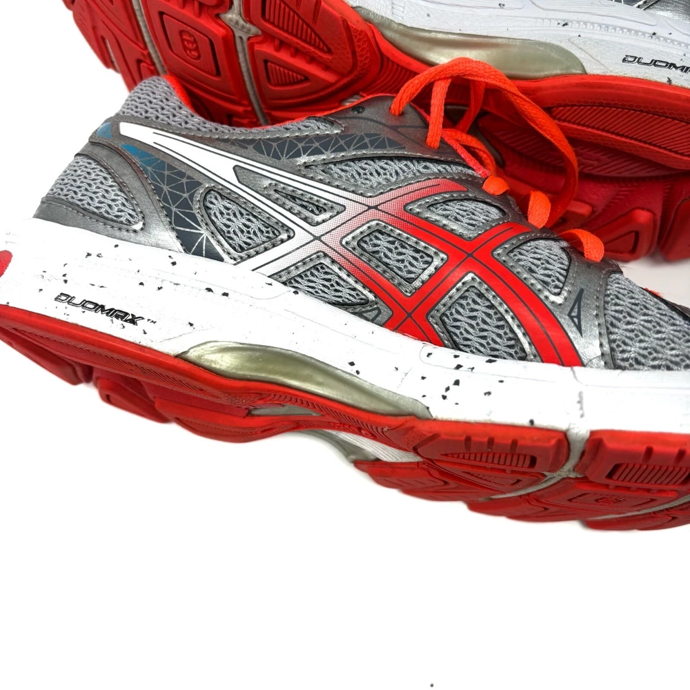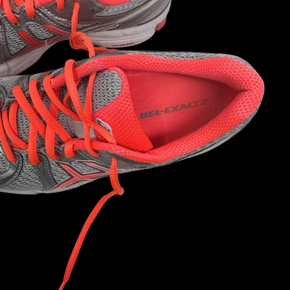 US Shoe Size: 8 Occasion: Activewear, Casual Signed: No Upper Material: Synthetic Fiber, Rubber Brand: ASICS Cleat Type: Rubber Seller Notes: “Good pre owned condition” Model: ASICS GEL-Exalt Season: Fall, Spring, Summer Department: Women Color: Gray Type: Athletic Style: Sneaker
