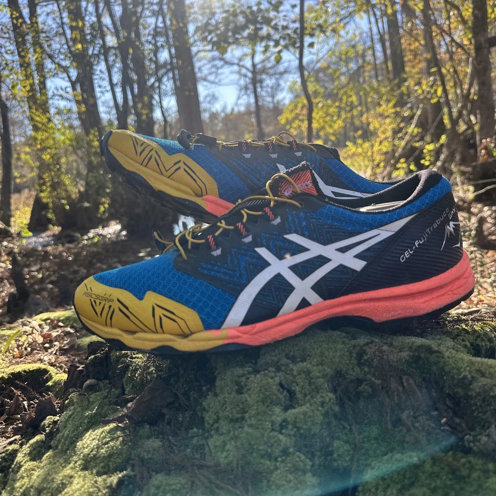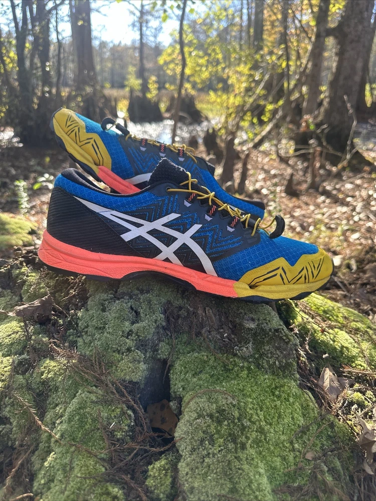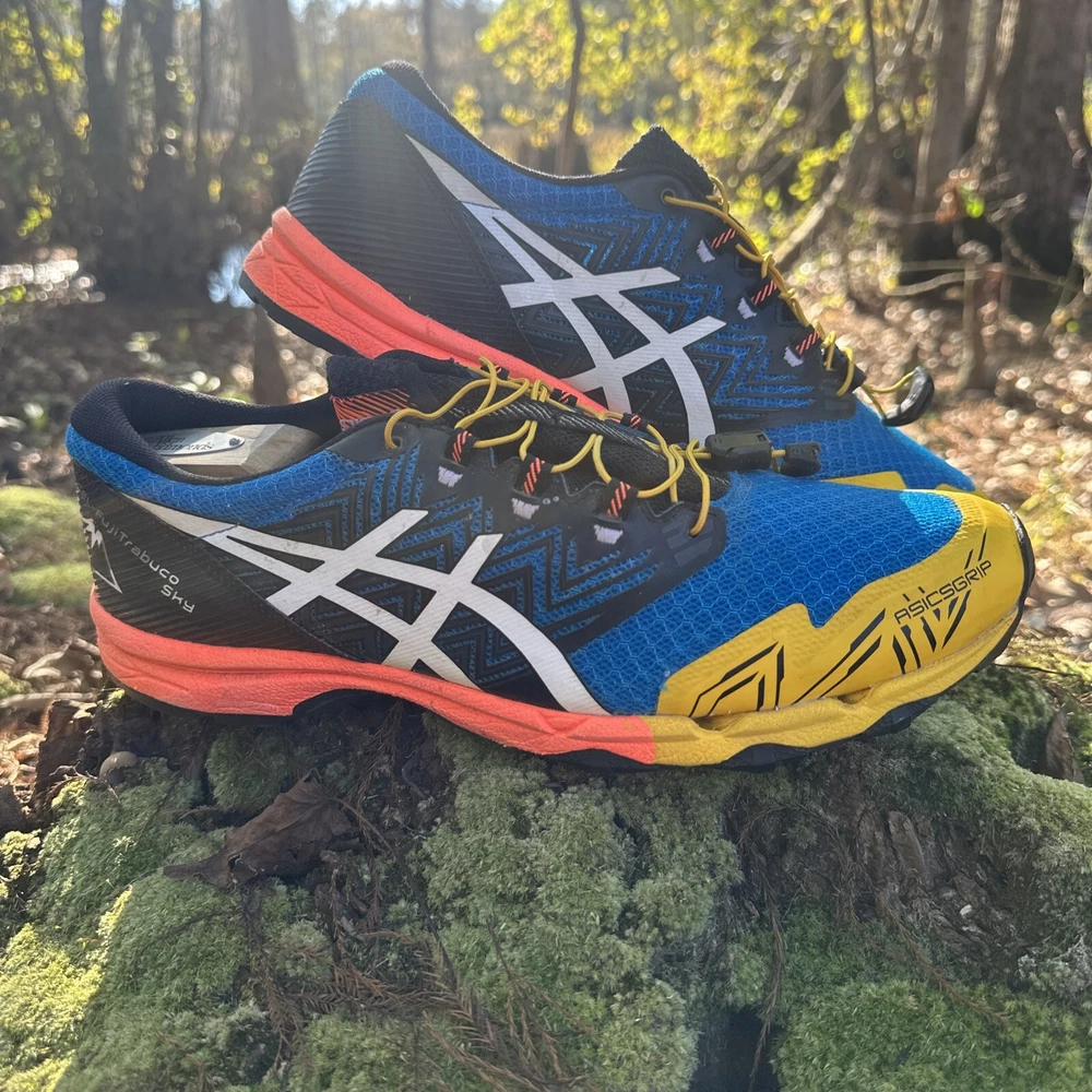 Shoes are in excellent condition. Please see pictures for an accurate description. Same day as a shipping. Pet loving, smoke-free shipping home. The Asics Gel-Fujitrabuco Sky Trail Running Shoes are primarily designed for trail running. They are specifically engineered to handle the unique challenges of off-road trails, which include uneven surfaces, rocky paths, and varying weather conditions. Key purposes include: 1. **Traction**: The specialized outsole provides grip on slippery or rugged terrain, enhancing stability. 2. **Comfort**: The cushioning technologies like Gel and FlyteFoam allow for comfort during long runs, absorbing shock and reducing fatigue. 3. **Durability**: They are built with materials that withstand the wear and tear of outdoor environments, ensuring longevity. 4. **Protection**: Features in the shoe design help protect the feet from rocks, roots, and other trail debris. Overall, these shoes cater to runners who enjoy exploring nature and need reliable footwear for challenging trail conditions. Get ready to tackle any trail with these limited edition Asics Gel-Fujitrabuco Sky Trail Running Shoes. Featuring a colorful and vibrant design with the ASICS logo, these shoes are perfect for outdoor enthusiasts who love to explore off the beaten path. The shoes are lightweight and comfortable, with a breathable mesh upper material that keeps your feet cool and dry even in hot weather. The shoes have a rubber outsole for optimal grip and traction, and a foam insole for added comfort. They come with an adjustable strap and drawstring closure for a secure fit, and have arch support to prevent foot fatigue. Whether you're cross training, CrossFit, or just love to run and jog, these Asics Fujitrabuco Sky Trail Running Shoes are the perfect addition to your activewear or workwear wardrobe.