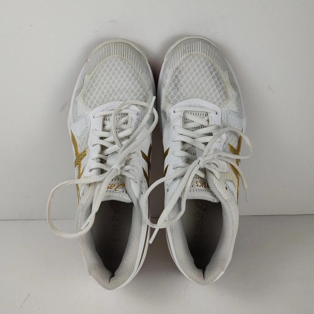 Asics Volleyball Athleticwear Streetwear Shoes Women's Size 8 Gel-Tactic 2 White and gold asics volleyball shoes, womens size 8. Theyre in great condition, no holes or stains. Has spots of wearing on the toe box (see picture 3) Theyve been thoroughly cleaned before listing Please reference photos before purchasing