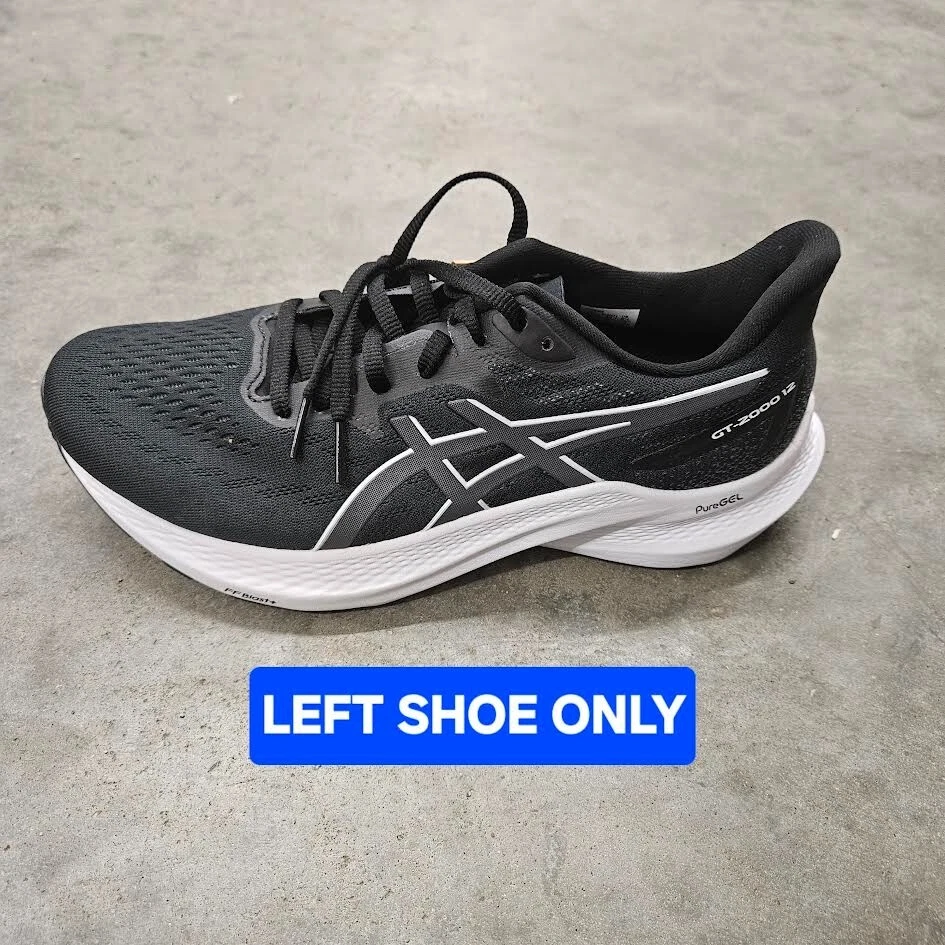 Asics Women's GT 2000 12, LEFT SINGLE SHOE, Black Running Sneakers, Size 8.5