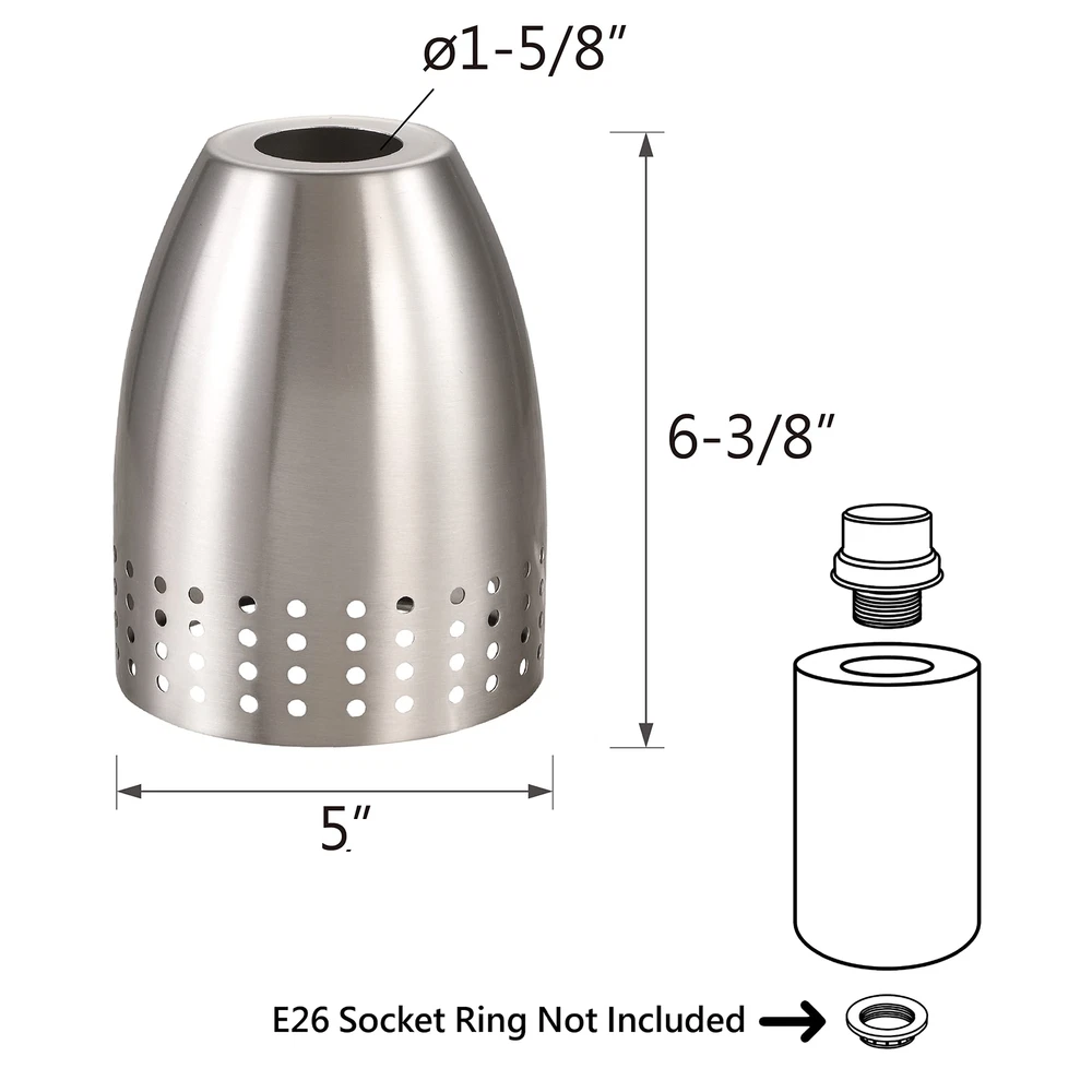 Aspen Creative offers a pack satin nickel metal shade. Each shade has a 1-5/8 inch fitter, and are 6-3/8 inches high x 5 inches diameter. for pendant light fixtures that require a 1-5/8 inch fitter. Upgrade and / or change the look for your fixtures with an easy to change. Aspen Creative satin nickel metal shade 1-5/8" Fitter, 6-3/8" high x 5" diameter for pendant light fixtures that require a 1-5/8" fitter Upgrade and / or change the look for your fixtures with an easy to change Ships in a 2 pack