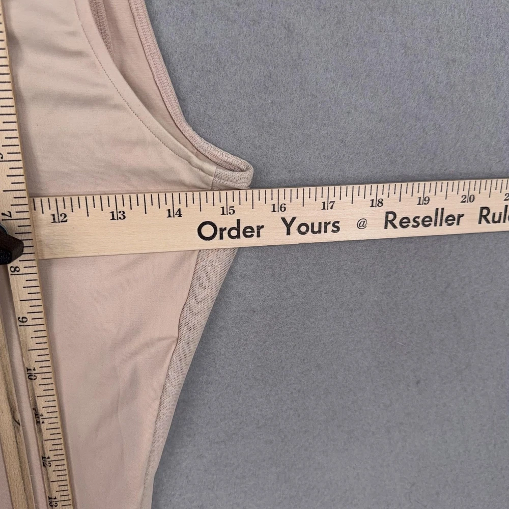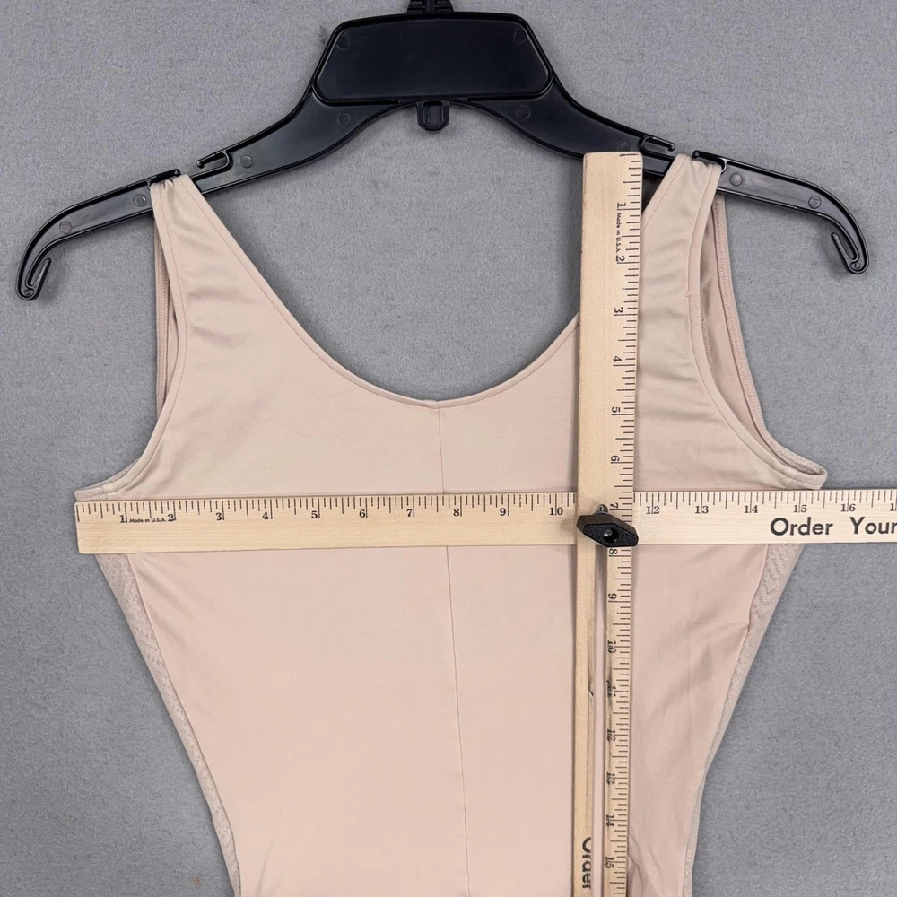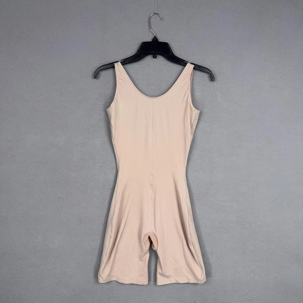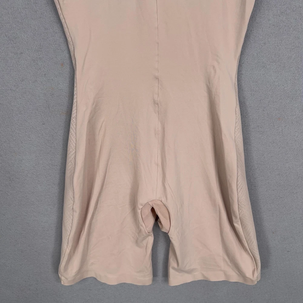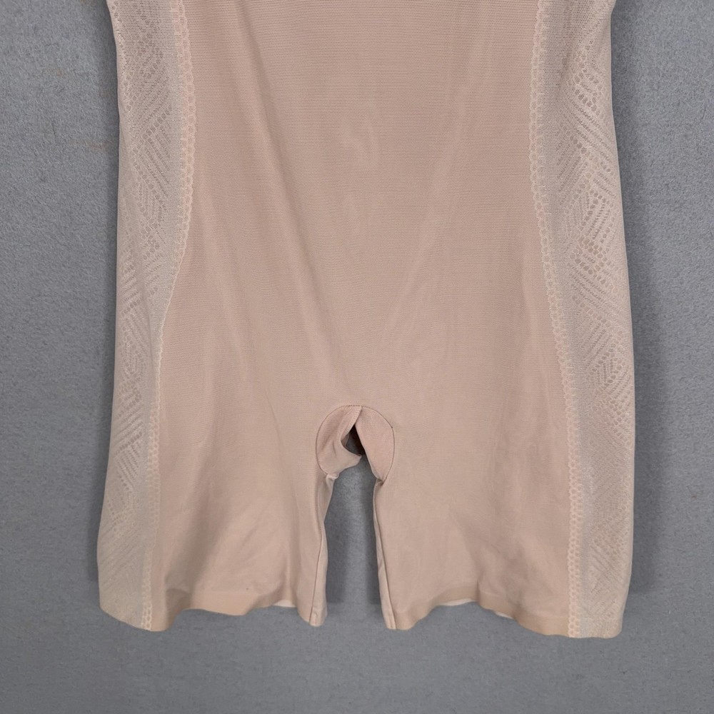 Assets By Spanx Shapewear Bodysuit Womens Large Beige Red Hot Label Mid Thigh Previously worn bodysuit with light overall wear. Fabric and seams intact; no original packaging or hangtags. Brand: Assets Red Hot Label by Spanx. Style: One-piece shaping bodysuit with mid-thigh legs designed to smooth the body under clothing. Color: Beige nude; solid microfiber body with tonal patterned mesh side panels. Department: Womens shapewear; size on tag: Large (L/G) with international equivalents including EUR 42-44 and UK/AU 16-18. Material: Stretch blend including nylon and spandex with cotton in the gusset lining (per care tag). Details: Scoop neckline front and back, wide shoulder straps, smoothing compression fabric, breathable mesh side panels, open gusset for convenience, seamless leg openings for minimal panty lines. Label information: Printed inner label with Assets Red Hot Label by Spanx branding, made in Indonesia; RN 112121. 23950 Measurements: Previous washings may change sizing on the tag. Refer to photos above for all measurements. Compare our measurements to one of your favorite garments. Measurements are approximate. All items are bagged and sealed after being photographed, then stored in a smoke free environment. Washed per eBay standards. I carefully package and ship daily. Contact me with any questions. Thanks