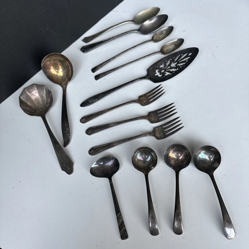 Assorted Vintage Flatware Pieces - Lot of 14 - Various Brands
