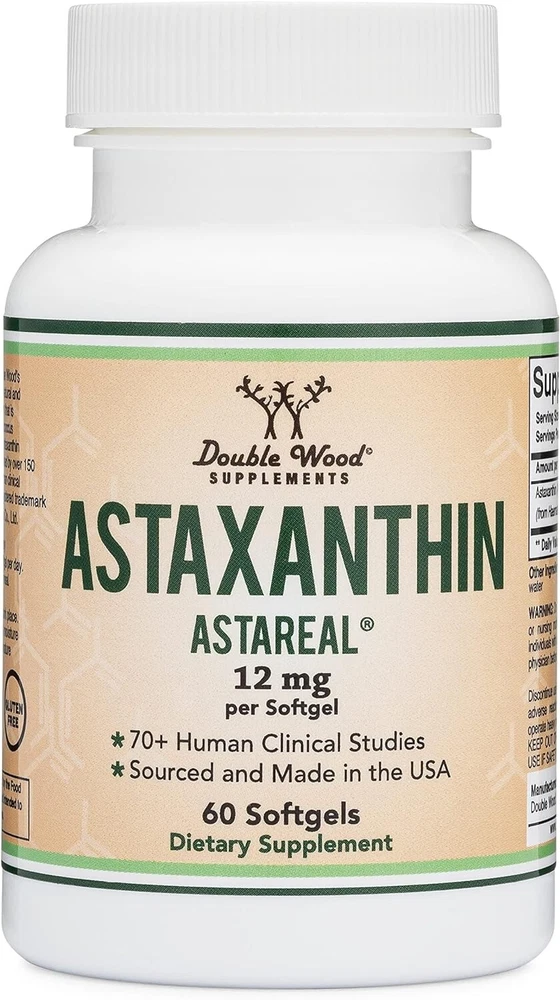 WORLD'S MOST STUDIED BRAND: AstaReal is the world's most studied brand of astaxanthin and is backed by over 70 clinical trials on humans. AstaReal may support skin health, healthy aging, immune health, eye health, gut health, and help one recover more quickly from exercise MULTIPLE HEALTH BENEFITS: AstaReal has been clinically studied for skin health, aging support, immune health, eye health, gut health, and sports recovery POTENT ANTIOXIDANT: Astaxanthin is 1.6x more potent than Lycopene, 3000x more potent than resveratrol, and 6,000 times more potent than Vitamin C TWO MONTH SUPPLY: Double Wood's Astaxanthin contains 60 softgels at a maximum 12 mg dose, enough to last a full two months WE BOTTLE WELLNESS: At Double Wood we provide pure, potent supplements that deliver exceptional value, all backed by careful sourcing and rigorous third-party testing