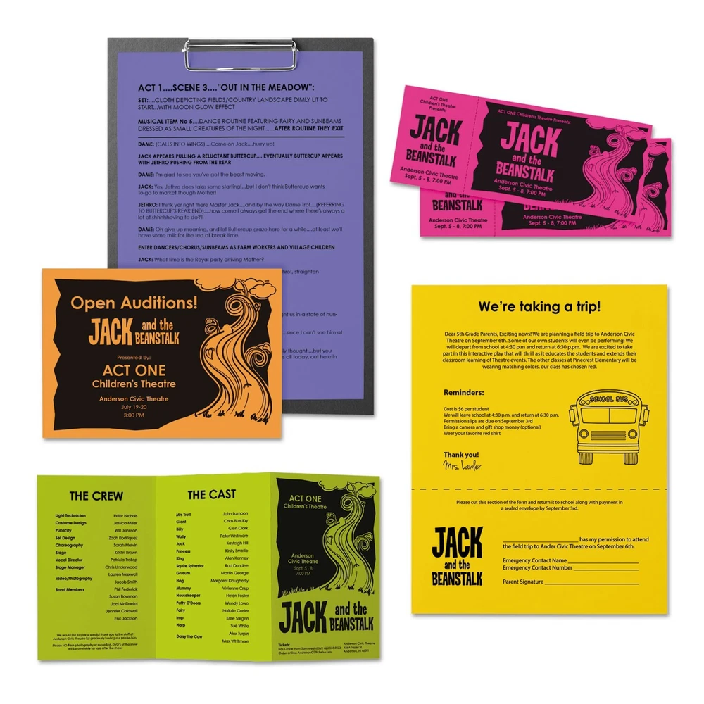 Astrobrights Color Paper - "Happy" Assortment, 24 lb Bond Weight, 8.5 x 11, Assorted Happy Colors, 500/Ream (21289) When you need to stand out with high-impact colors, Astrobrights Colored Paper is a great choice. Its 20% thicker and more substantial than ordinary printer paper, so you can achieve great results for one- and two-sided documents. Plus, because the colored copy paper creates a vibrant background, youll save on pricey full-color ink printing. Easily create vibrant fliers, brochures, school projects, signs, coupons, posters and paper crafts. Brighter colors. Brighter ideas. Cant decide on just one high-impact color? With the Astrobrights Happy Assortment, you dont have to. Get ready for your most creative ideas to really take off! Sheet/Roll Size: 8.5 x 11; Paper Basis Weight (lb): 24 lb Bond; Paper Grade (gsm): 89 gsm; Paper/Media Color(s): Assorted Happy Colors. Features Cant decide on just one high-impact colorwith the Astrobrights Happy Assortment, you dont have to. Create attention-getting notices, flyers, announcements and bulletins. Inkjet, laser and copier guaranteed. Acid- and lignin-free.