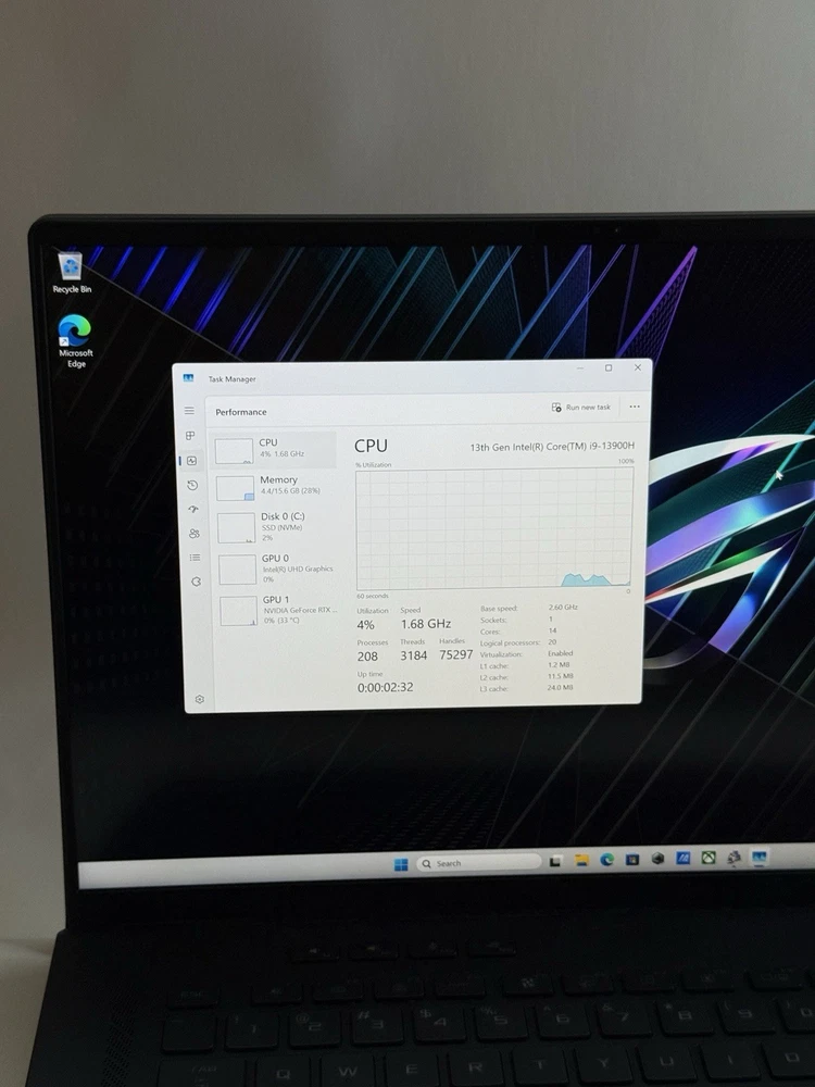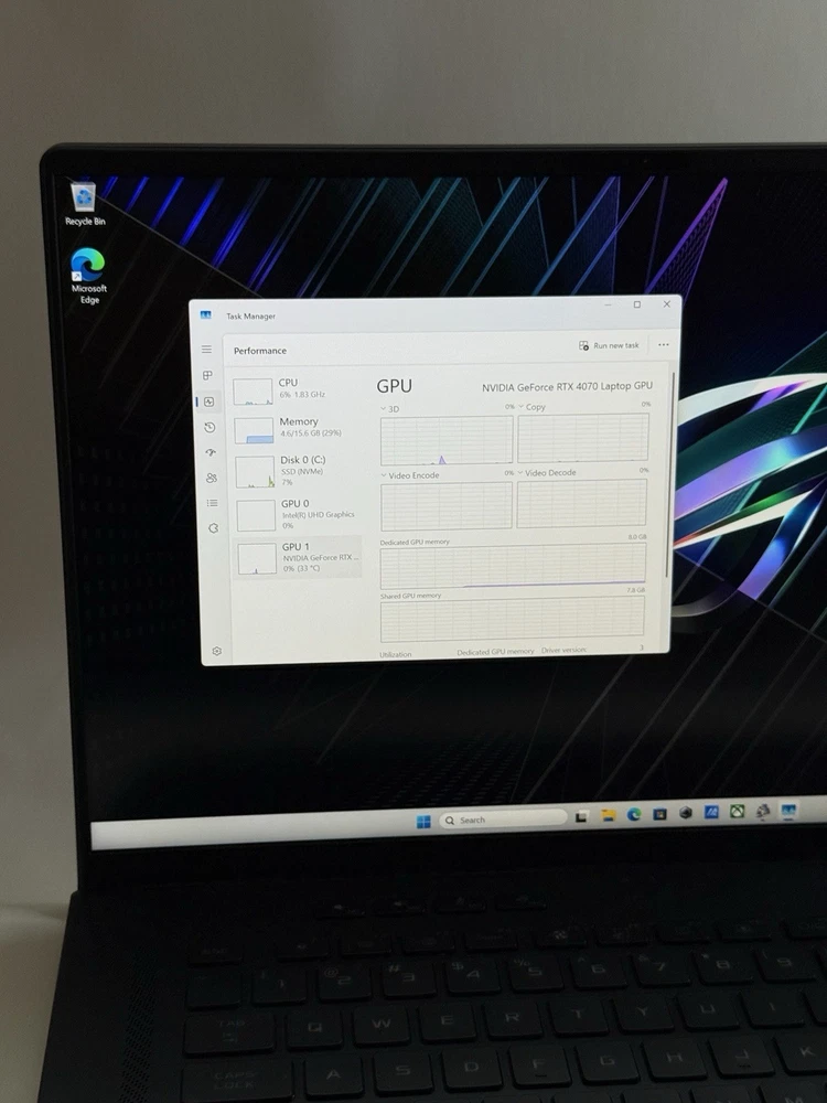 The laptop is in excellent condition — fully functional, with no issues or damage Specifications: • Processor: Intel Core i9-13900H (13th Gen) • Graphics: NVIDIA GeForce RTX 4070 8GB • Memory: 16GB DDR5 RAM • Storage: 1TB NVMe SSD Included: • ASUS ROG Zephyrus M16 laptop • Original ASUS 280W power adapter • Original retail box and factory accessories This is a premium gaming and productivity laptop that offers top-tier performance in a lightweight and stylish body. Perfect for gamers, video editors, and power users