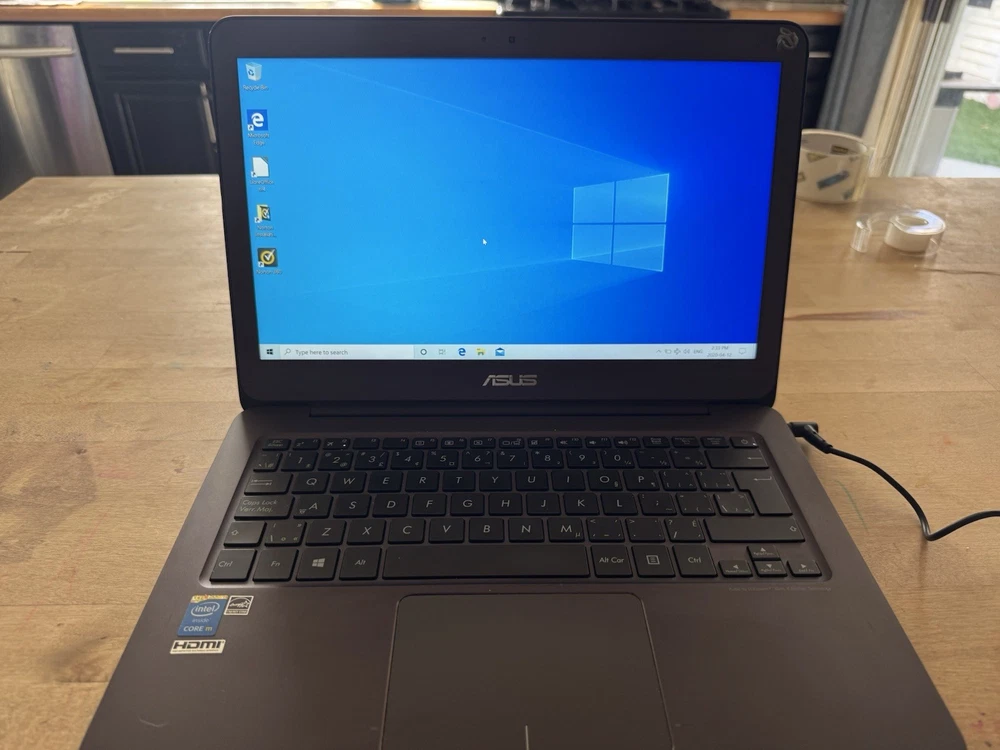 The Asus ZenBook UX305F is a sleek and powerful laptop featuring an Intel Core M processor, 13.3-inch screen size, and integrated graphics processing. This laptop comes in a stylish gray color and is equipped with Windows 8.1 and Windows 8 operating systems. With its compact and lightweight design, the Asus ZenBook UX305F is perfect for on-the-go productivity and entertainment. Ideal for users looking for a reliable and efficient laptop for everyday use. Small dent on the front. Includes power cable, original box and packaging. Factory Reset by seller