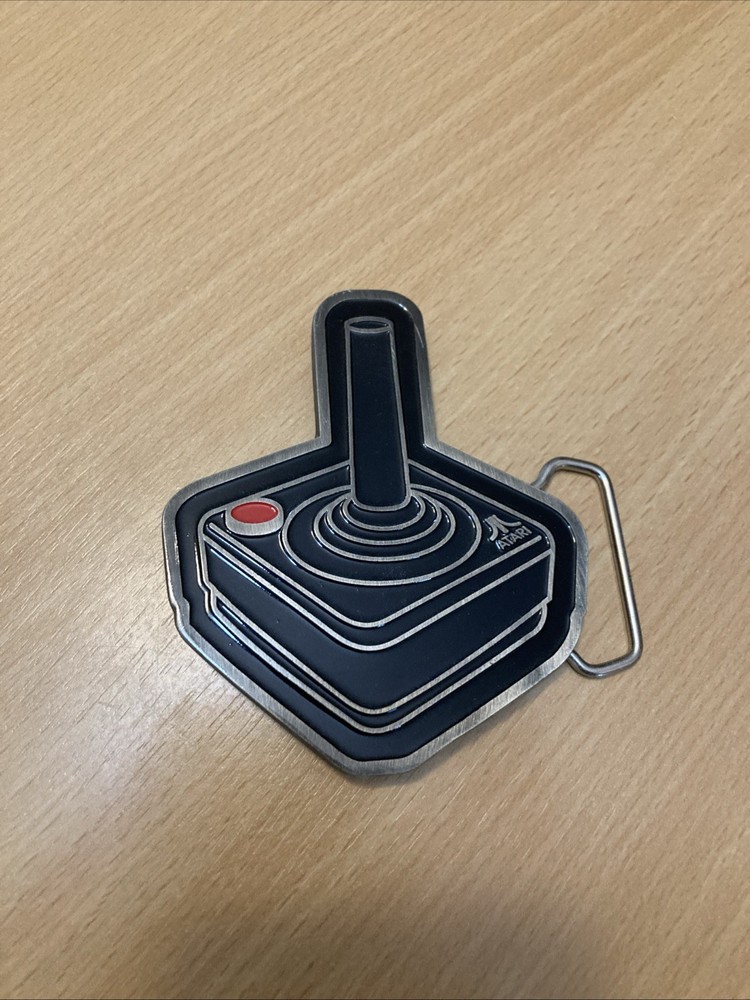 Embrace your love for classic gaming with the Atari 2600 Controller Collectible Belt Buckle. This novelty belt buckle features the iconic Atari logo, evoking the nostalgia of the legendary gaming system. Designed for enthusiasts and collectors alike, the buckle is crafted from durable metal and showcases a sleek black finish that complements any outfit. Ideal for any fan of Atari or vintage gaming culture, this belt buckle adds a unique touch to your style. It's a perfect accessory for those who appreciate retro video games and wish to display their passion in a subtle yet stylish manner. The buckle is suitable for men and carries the distinctive Atari brand authenticity.