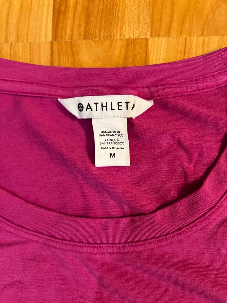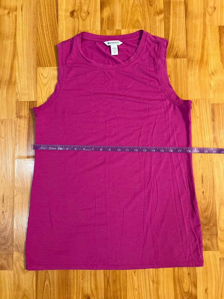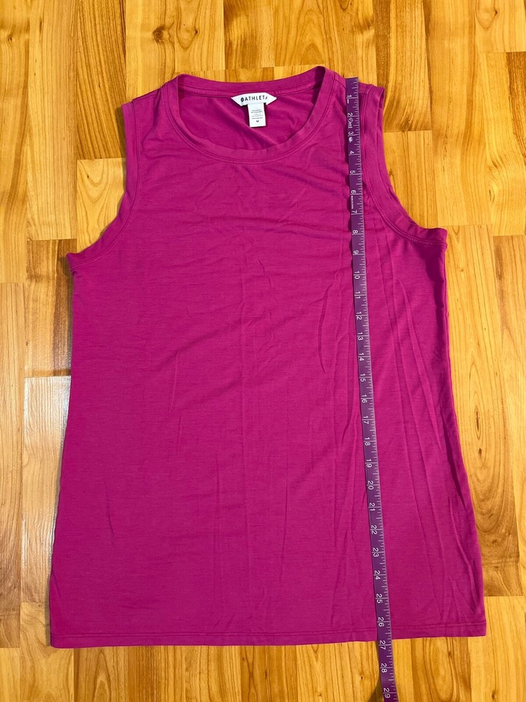 The Athleta Women's Medium Pink Tank Top is a versatile activewear piece perfect for a variety of occasions such as gym workouts, running, yoga, or walking. Made from a comfortable knit fabric with a crew neck and pullover closure, this tank top features a longer back and is designed for breathability and stretch. With a solid pink color and sleeveless style, this classic tank top from Athleta is a must-have for your active wardrobe during the summer, fall, and spring seasons. Machine washable for easy care, this tank top offers a regular fit and compression area in the back for added support.