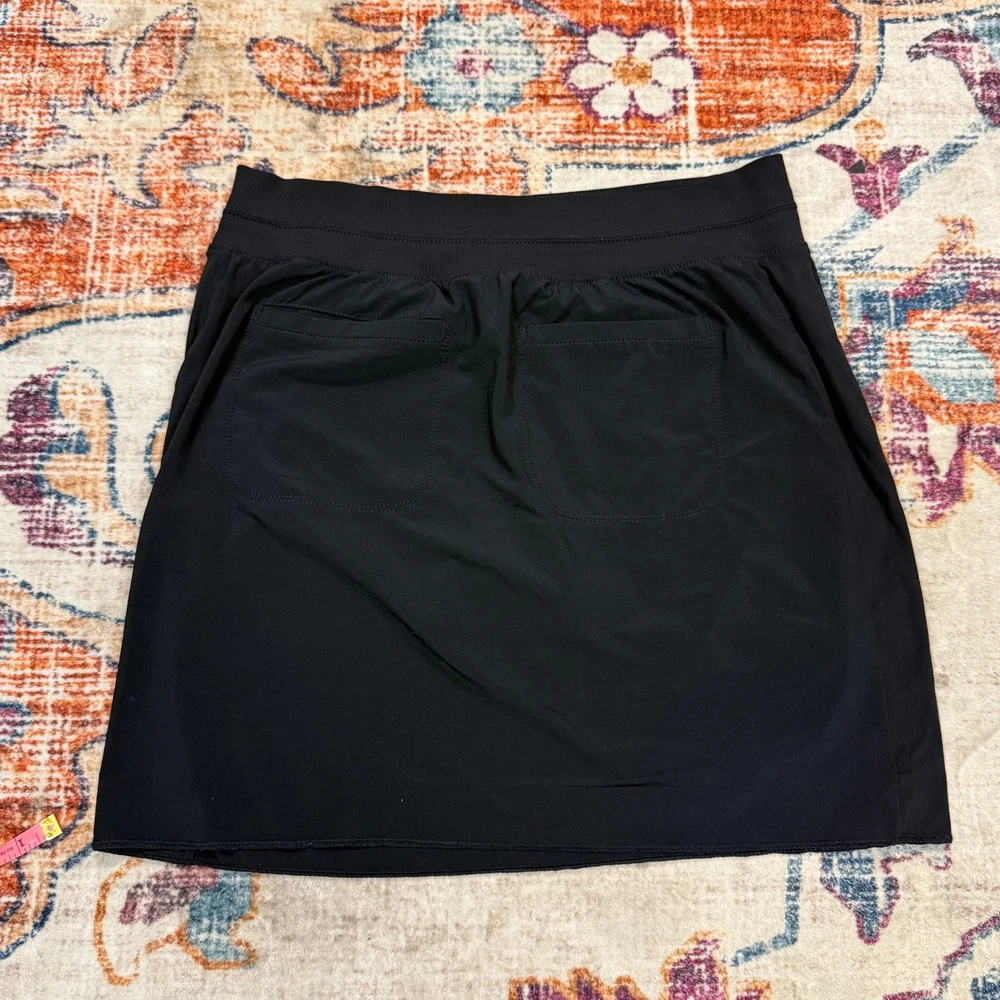 Athleta black athletic skort featuring a comfortable elastic waistband and zippered pocket detail. Designed with built-in shorts for comfort and mobility, and two back patch pockets for storage. The fabric offers a smooth finish and excellent performance. Measurements: • Waist: 14 in • Length: 18 in Department: Women Type: Skirt Style: Athletic Performance/Activity: Golf, Tennis, Yoga, Gym & Training Skirt Length: Short Fit: Athletic Pattern: Solid Features: Stretch, Lightweight, Wrinkle Resistant, All Seasons Occasion: Activewear, Casual Closure: Pull On Material: 100% Polyamide Fabric Type: Mesh Keywords: Athleta skirt, athletic skort, tennis skirt, golf skort, activewear, performance wear, sporty, athleisure, workout skirt, zipper pocket, built-in shorts, black skort Item is preowned, effort has been made to ensure all flaws are displayed photos serve as additional description Sizing varies by manufacturer and time period, please see measurements.