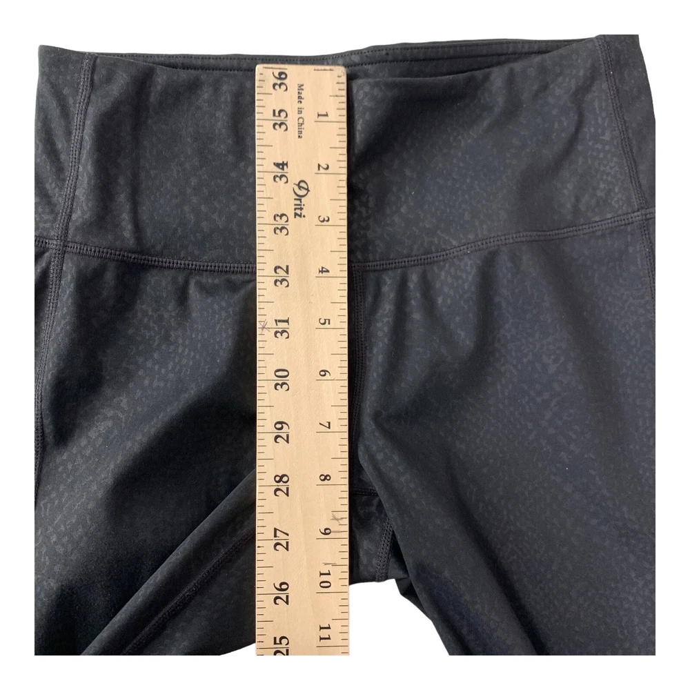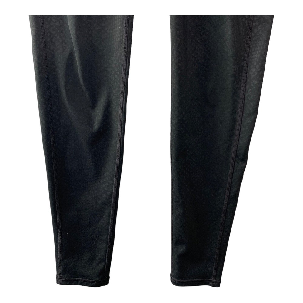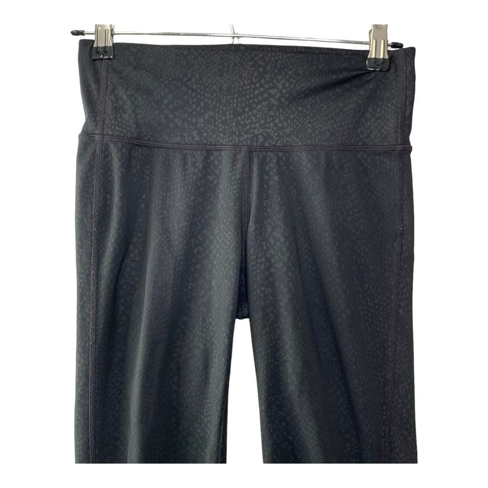 Elevate your activewear collection with these stylish and comfortable Athleta Chaturanga leggings. The black leggings with snakeskin print are perfect for any occasion, whether you're hitting the gym or going for a run. The mid-rise waist and ankle length provide a flattering fit, while the blended fabric of polyester and spandex ensures a stretchy and machine washable material. These leggings feature shaping and stretch features, which make them ideal for activities like yoga, cycling, and pilates. The size XS leggings have a waist size of 26 inches and inseam of 28 inches. They come from the Athleta Chaturanga product line, and their performance and activity range includes gym and training, cross training, bodybuilding, and running. Perfect for all seasons- summer, winter, fall, and spring, these leggings are available for personalized use.