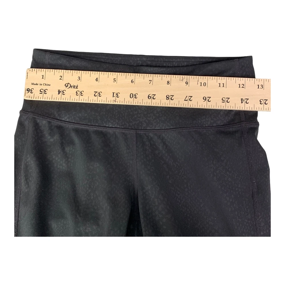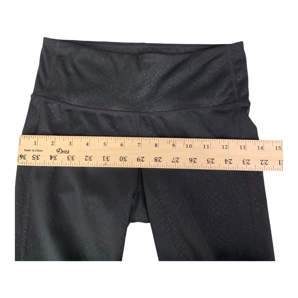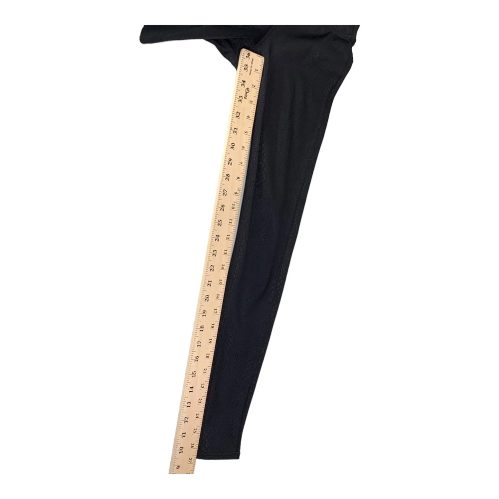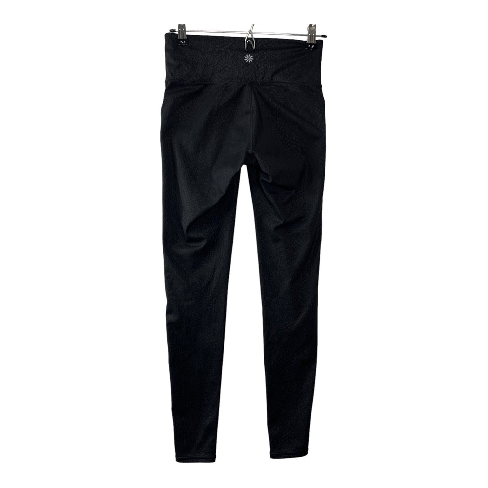 Elevate your activewear collection with these stylish and comfortable Athleta Chaturanga leggings. The black leggings with snakeskin print are perfect for any occasion, whether you're hitting the gym or going for a run. The mid-rise waist and ankle length provide a flattering fit, while the blended fabric of polyester and spandex ensures a stretchy and machine washable material. These leggings feature shaping and stretch features, which make them ideal for activities like yoga, cycling, and pilates. The size XS leggings have a waist size of 26 inches and inseam of 28 inches. They come from the Athleta Chaturanga product line, and their performance and activity range includes gym and training, cross training, bodybuilding, and running. Perfect for all seasons- summer, winter, fall, and spring, these leggings are available for personalized use.