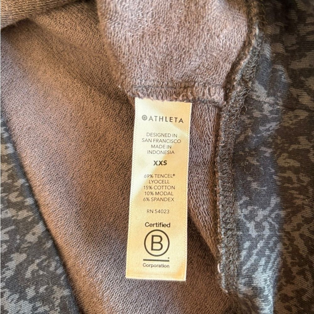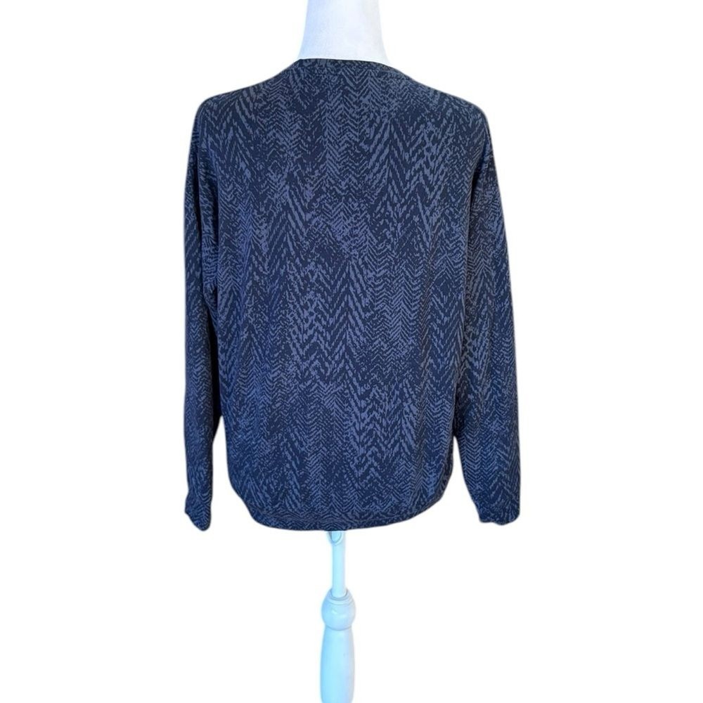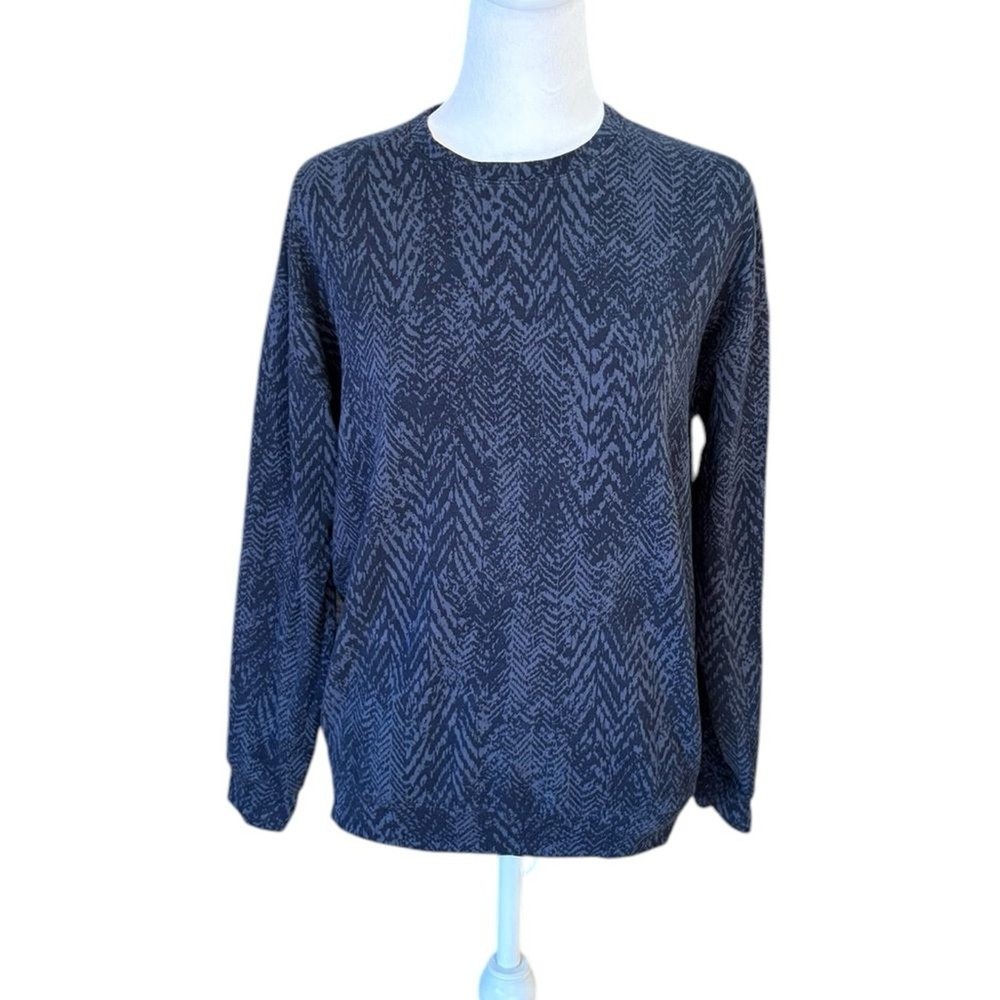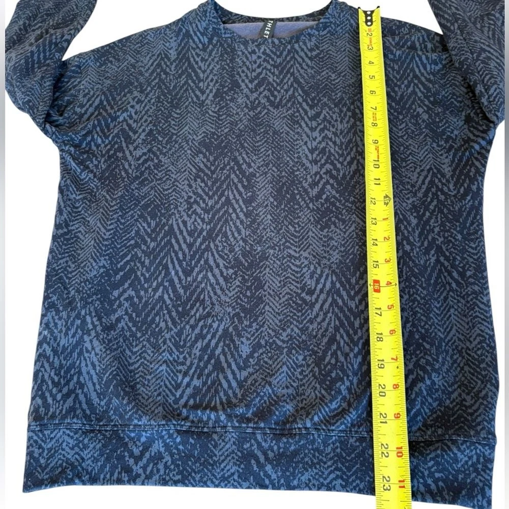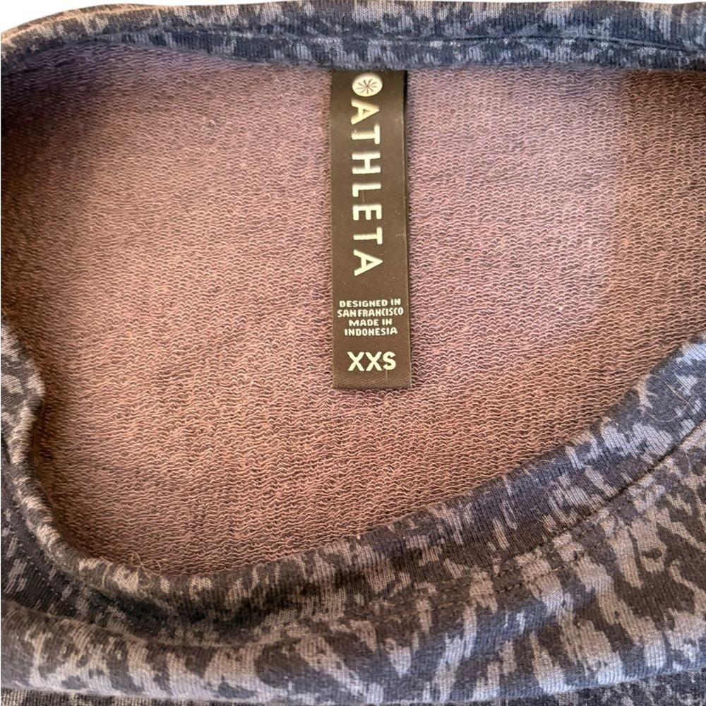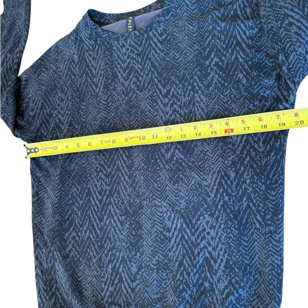 Athleta Crew Neck Studio to Street Sweatshirt Blue Medusa Print Womens XXS Excellent condition no flaws to note Lots of stretch Size XXS but could fit women’s XS or small in my opinion so please refer to flat lay measurements to ensure fit
