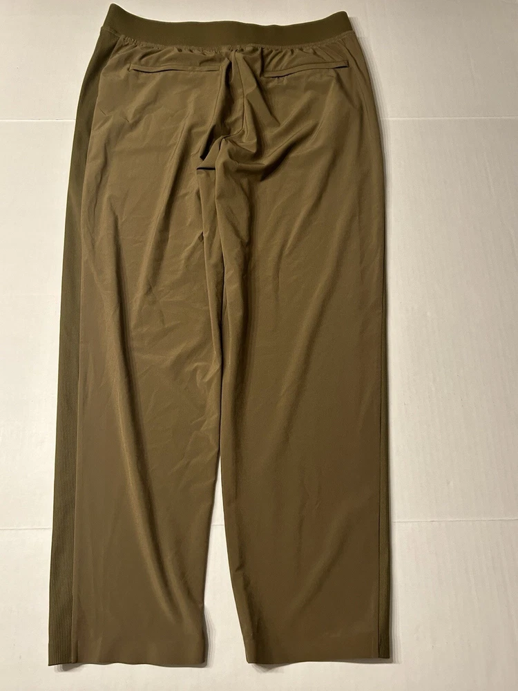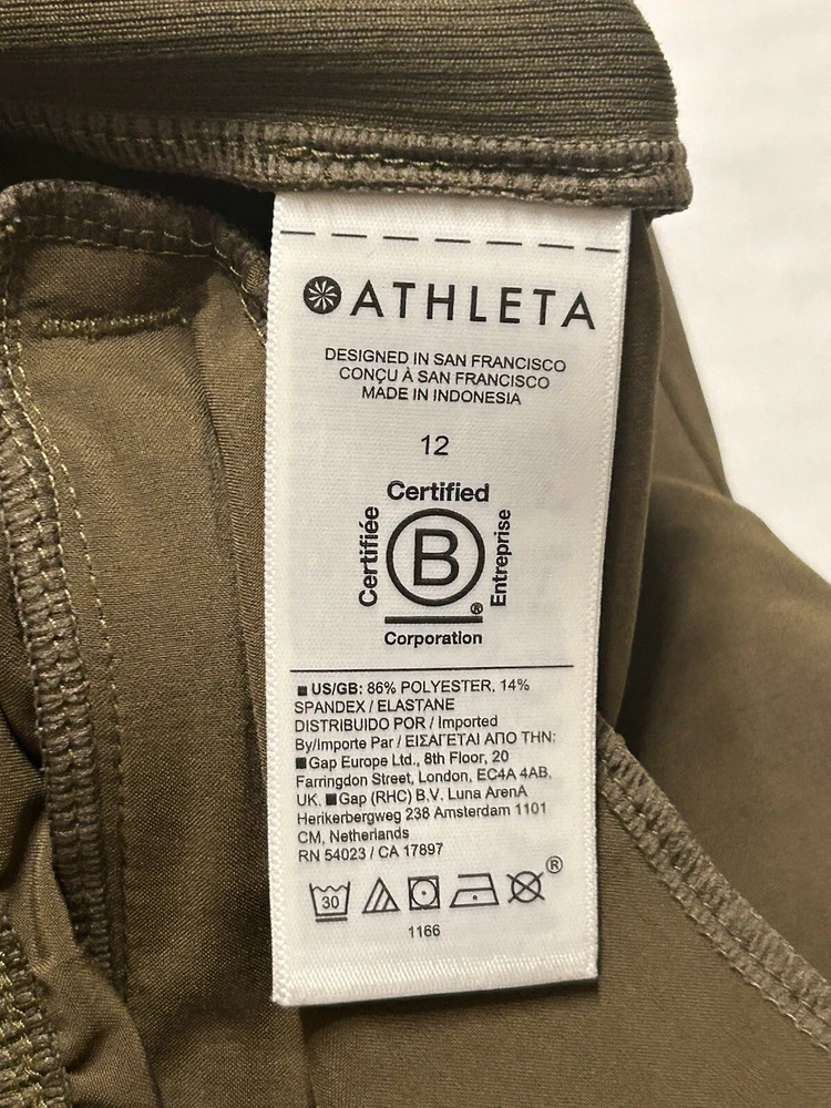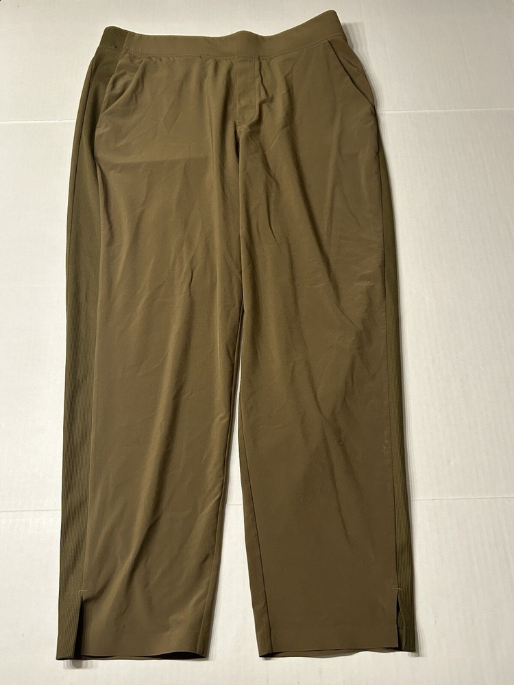 Athleta Brooklyn Mid Rise Ankle Pant, Acacia Olive Pants Size 12 Excellent pre-owned condition Waist across:17” Rise:12” Inseam:28” With ribbed panels at the waist for mobility & comfort, these lightweight pants in our Featherweight Stretch fabric can be dressed up or down as you please. We love them for travel because they don't wrinkle easily." Recycled Polyester/Spandex FEATHERWEIGHT STRETCH™. Silky sleek fabric made from recycled polyester is so lightweight, it feels weightless BREATHABLE. Sweat can travel through the fabric so it can evaporate on the surface WRINKLE-RESISTANT. Packable fabric stays smooth in your bag QUICK-DRYING. Dries in a flash for comfort factor IT FEELS: Ultra-lightweight, silky sleek, stretchy RATED UPF 50+ (Excellent Protection) Machine wash and dry.