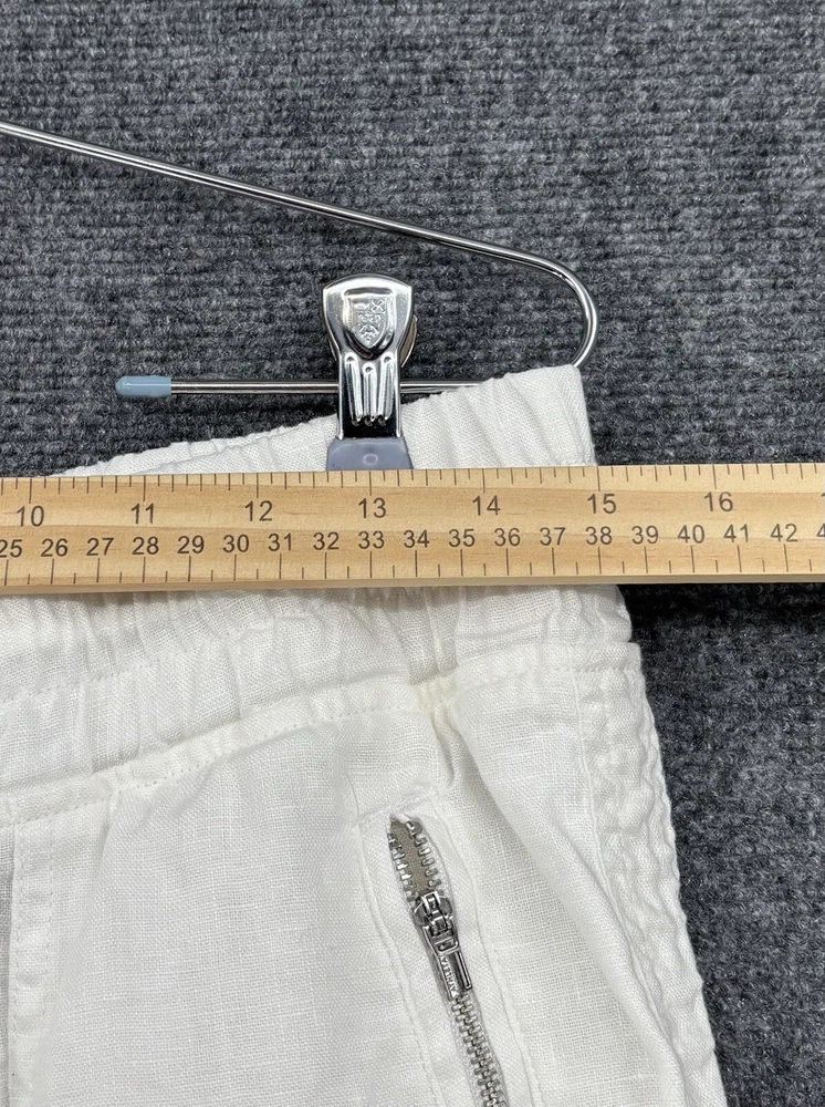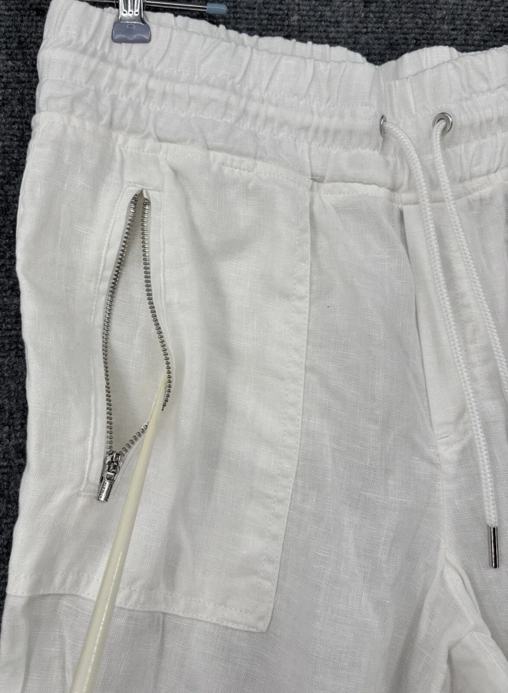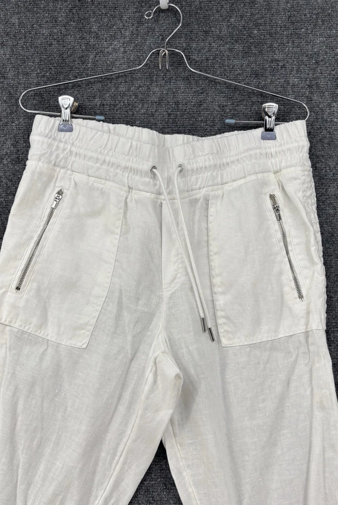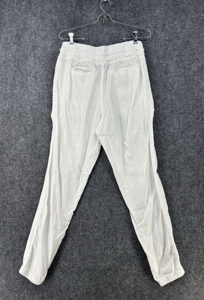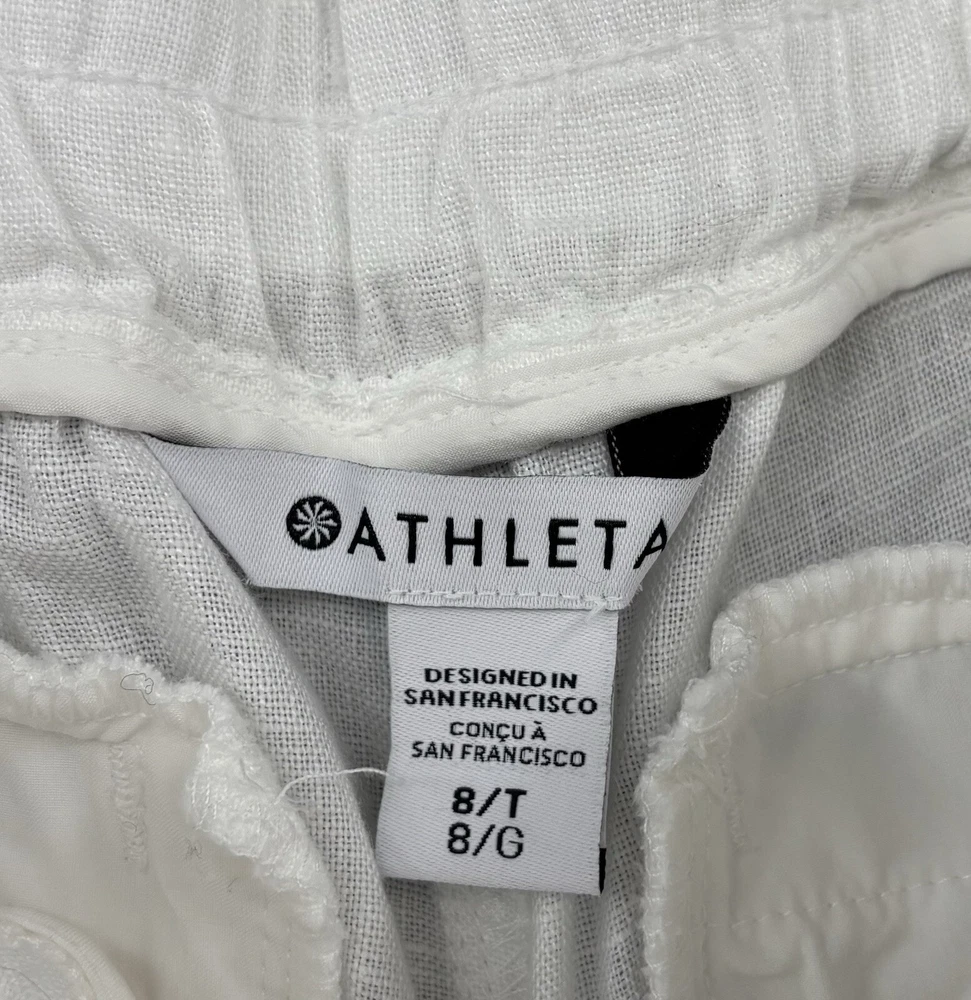 Athleta Cabo Linen Jogger 8T Tall White Zipper Pockets Athleisure Casual Beachy