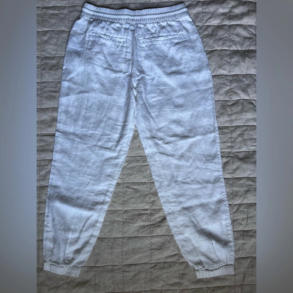 Athleta Cabo White Linen Jogger Pants Beachy Lagenlook Resortwear Casual - 6