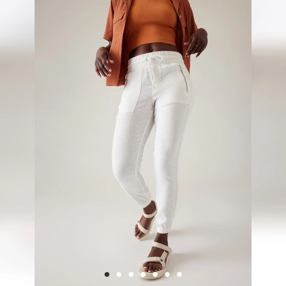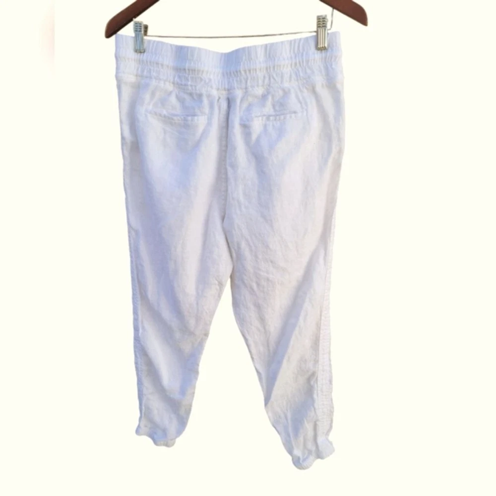 In excellent like new condition. Size 10 Waist 16 Rise 11 Inseam 26 Semi-fitted, skims easily over the body Linen Machine wash and dry. FOR: Warm-weather travels, resort vacations and to and from the beach FEEL: Subtly textured linen feels light on the skin