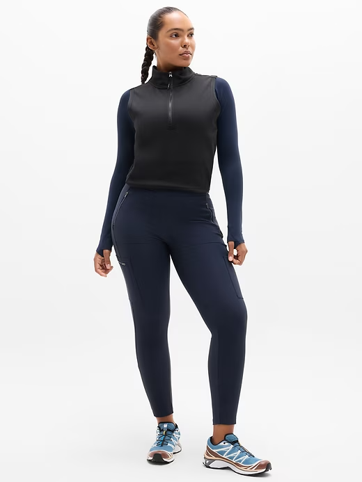 FOR: Hiking, climbing and exploring FEEL: Our favorite durable, adventure-ready fabric resists nicks and tears on cold-weather explorations FAVE: Six secure zip pockets to stash your essentials Internal drawcord for adjustability Size & fit Fitted next to the body with a high-rise waistband Sits at natural waist Inseam: Regular/Plus: 28", Petite 26", Tall 31" Fabric & care 75% Recycled Polyester/25%LYCRA ABRASION-RESISTANT: Resists snags and tears RATED UPF 40+ (Excellent Protection);COMPRESSION: Keeps you held in and supported in all the right places SUSTAINABLE: Made with Recycled Nylon, a high-performance material that helps lessen our impact on the world Machine wash and dry. Imported.