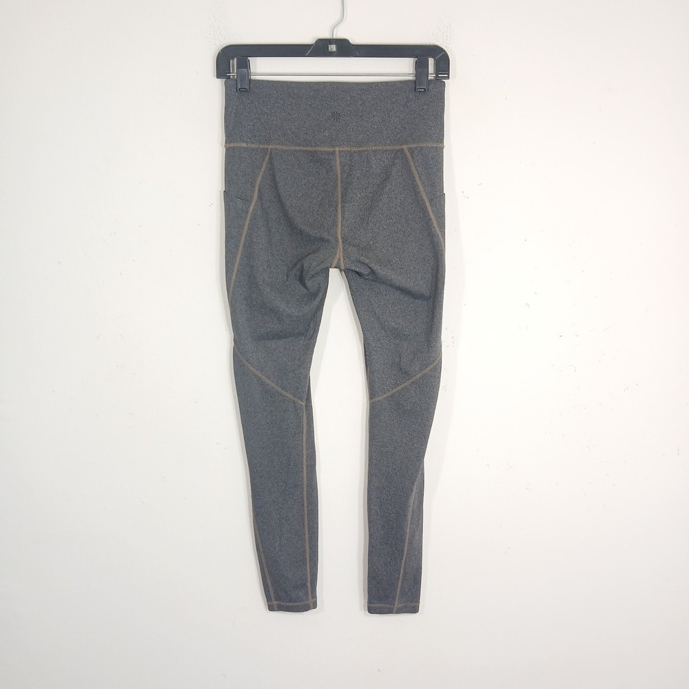 These Athleta Women’s High Rise Pocket Leggings in Gray, size Small, are perfect for yoga, running, and other active pursuits. Made from a blend of nylon, polyester, and Lycra Spandex, they offer stretch and breathability. The contrast stitching and logo accents add a stylish touch to these leggings, while the high rise waist and pockets provide both comfort and functionality. Whether you're working out at the gym or running errands, these leggings are a versatile addition to your wardrobe, suitable for various occasions in the summer, fall, and spring seasons.