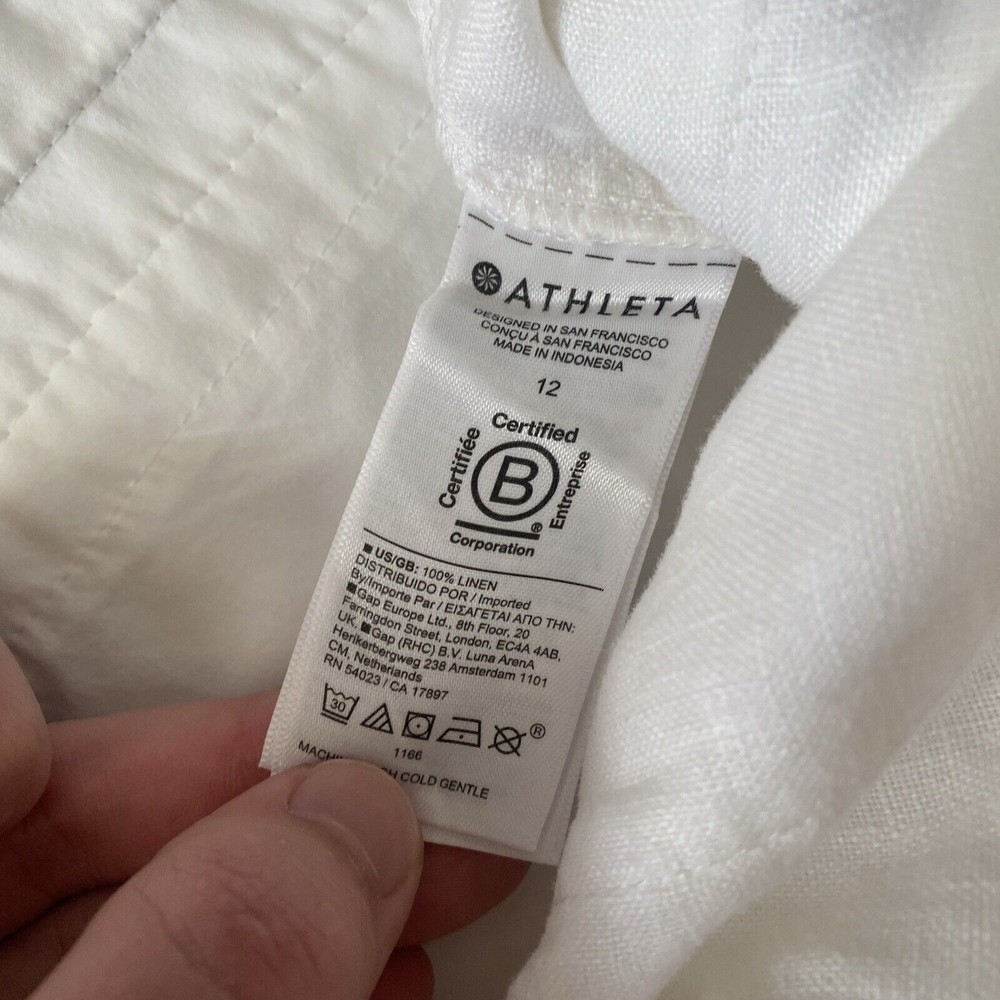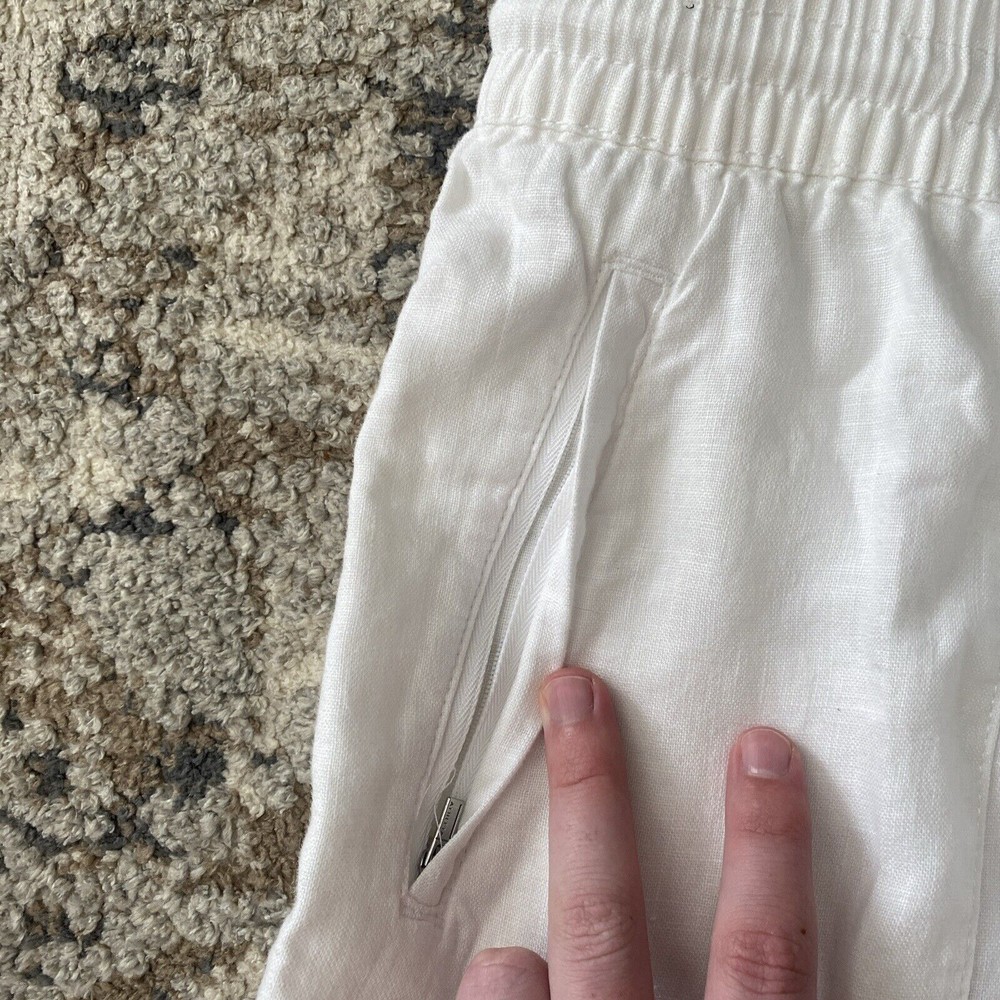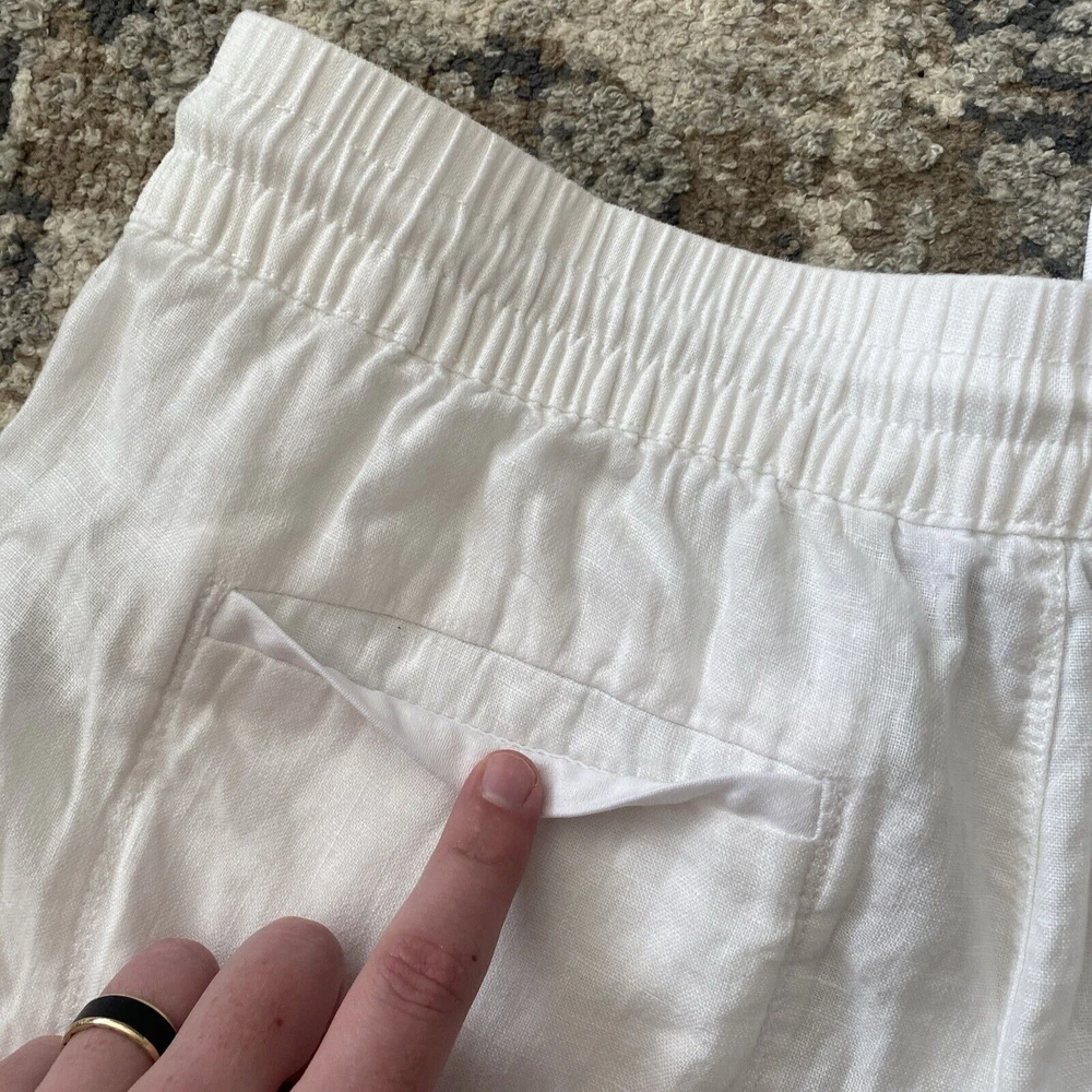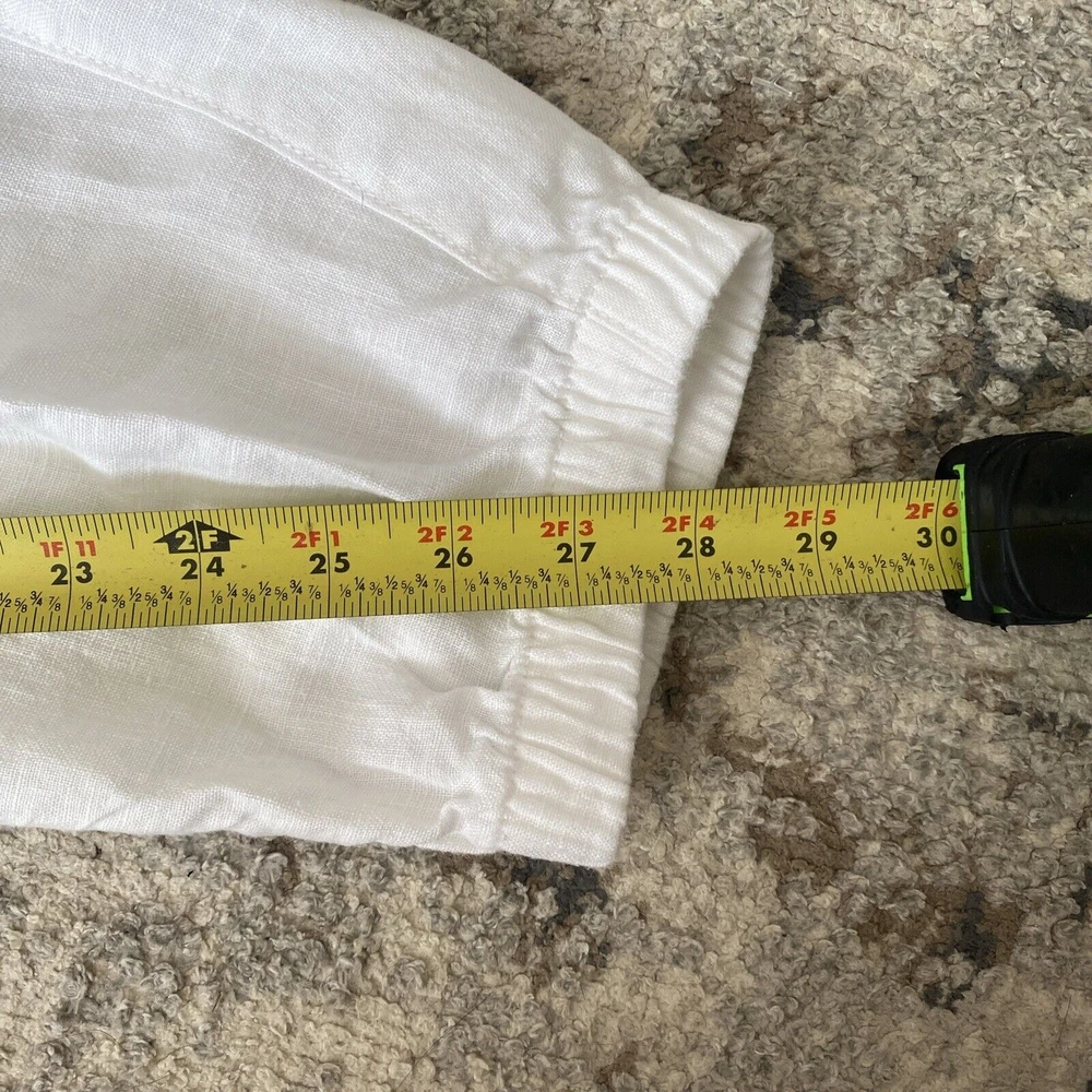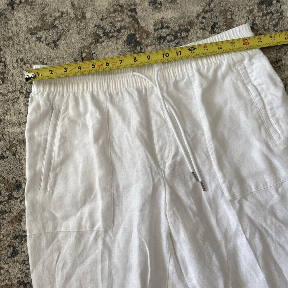 Athleta Womens White High Rise Drawstring Cuff Ankle Retreat Linen Pants Size 12