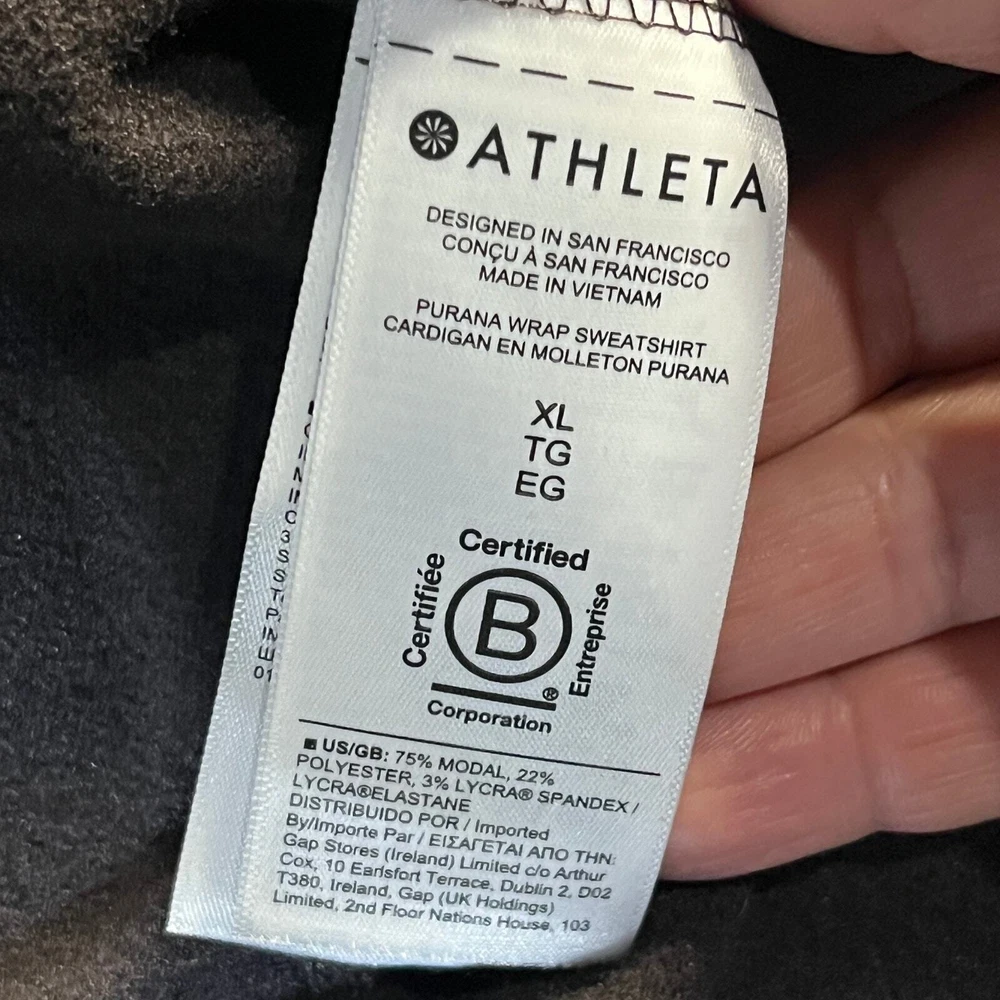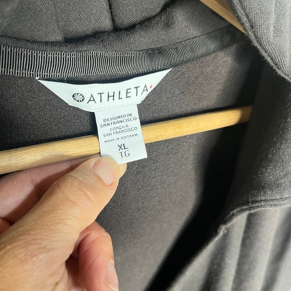 Athleta Women's Hooded Purana Long Sleeve Wrap Sweatshirt Decadent Chocolate Size XL Upgrade your activewear wardrobe with the Athleta Women's Hooded Purana Long Sleeve Wrap Sweatshirt, perfect for staying comfortable and stylish in any season. This versatile wrap sweatshirt features a soft, lightweight fabric that drapes beautifully, making it an ideal layering piece for yoga, casual outings, travel, commuting or lounging. The elegant wrap design flatters all body types, while the attached hood adds a touch of laid-back sophistication. Measurements are approximate/flat Preowned used condition *Please note measurements pictures may not reflect accurate color 6th Boro Thrift is a smoke free pet friendly store