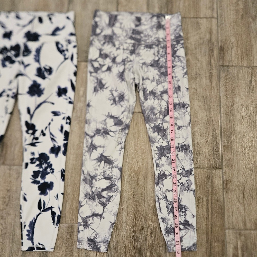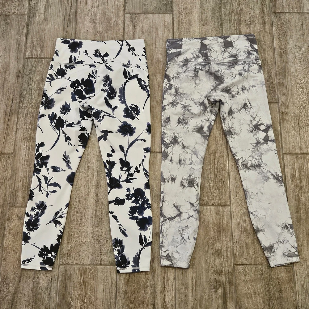 Athleta Leggings Womens Size S Lot of 2 Floral Tie Dye Grey White 7/8 Length Measurements are included in the photos Length hits around the ankle High Rise Both are in good pre-owned condition. Very minimal signs of washing Bundle for a discount or send an offer