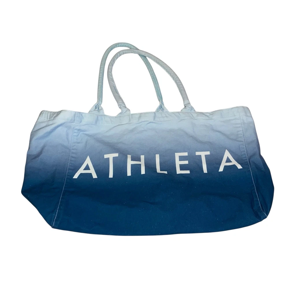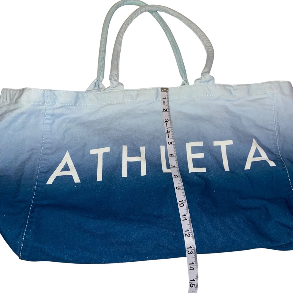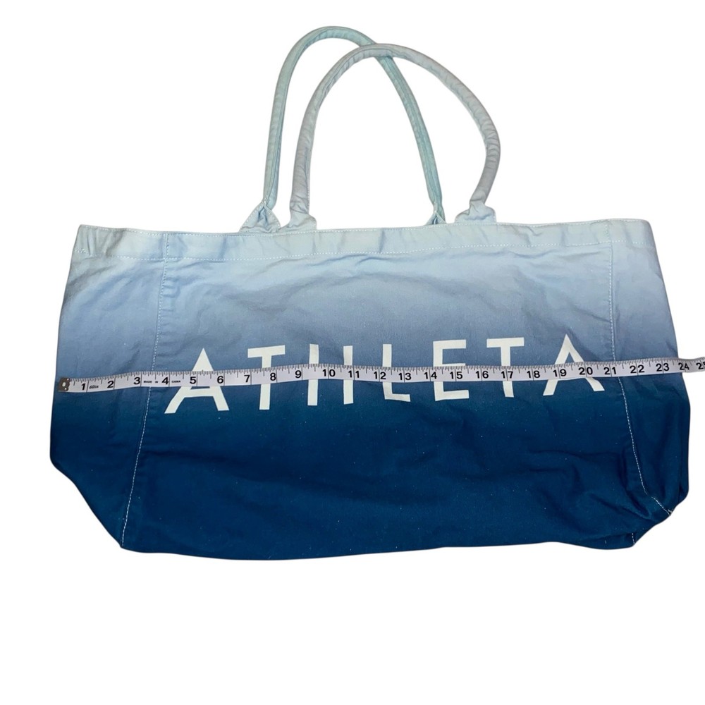 Athleta Extra Large 100% Cotton Canvas Blue Gradient Beach Tote Bag 24" x 13" This Athleta beach tote bag is perfect for carrying all your essentials to the beach, pool, or gym! It features a beautiful blue gradient design and is made from durable canvas material. The bag is extra large, measuring 24" x 13", providing plenty of space for towels, sunscreen, water bottles, and more. It's in excellent condition and ready for its next adventure. Grab it now and make your beach days even brighter! Color in pics may vary due to lighting and/or monitor settings SHOP POLICIES * All items ship within 1-3 business days (I always try to ship by next business day) * This item is used pre-loved * Any defects (if any) are noted and shown in the photos * All sales are final * Please review the description/pictures and ask questions before purchasing