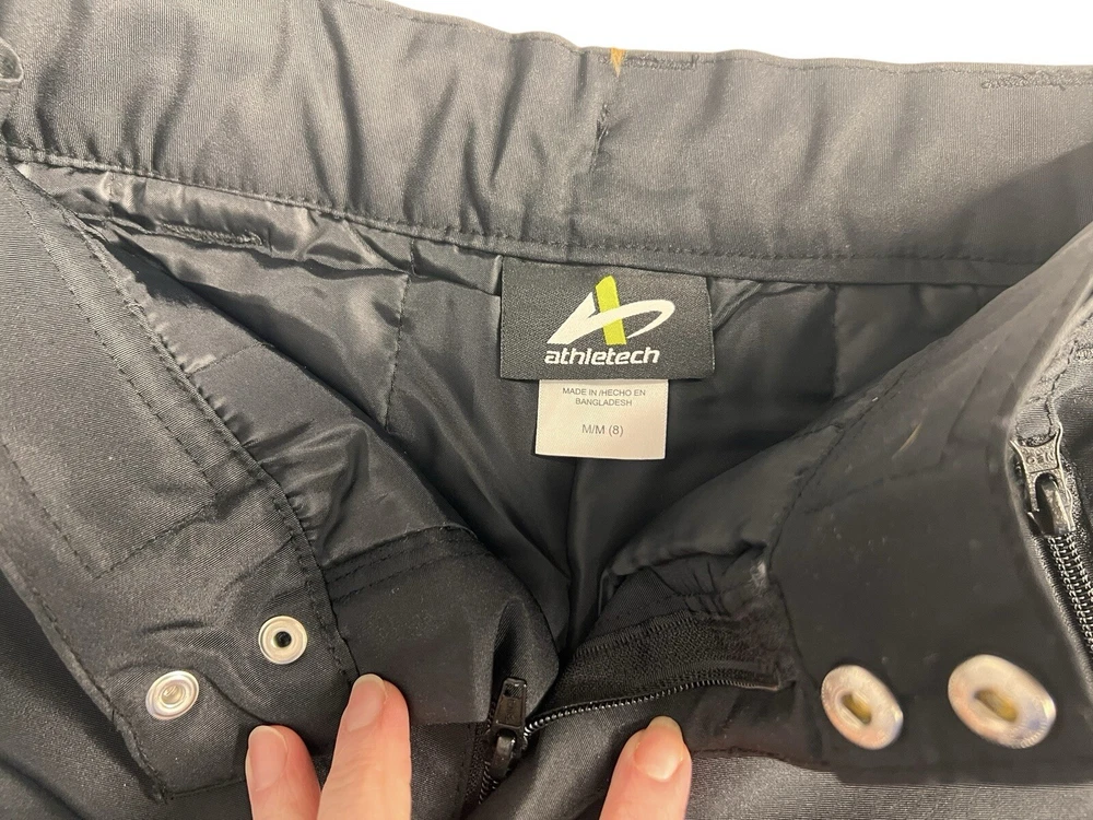 Great condition!! Get your little adventurer ready for winter with these Athletech black snow pants. Made with softshell fabric and water-resistant technology, these pants are perfect for outdoor activities such as skiing and snowboarding. The elastic waist and belt loops provide a comfortable and secure fit, while the pockets offer storage space for small items.These snow pants feature a snap and zipper closure and are lined for added warmth. They are easy to care for and machine washable, making them a practical option for parents. Available in size M (8) these pants are perfect for boys or girls who love to explore the great outdoors. Ships fast with priority mail. From smoke free home