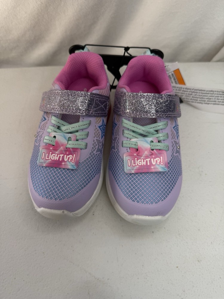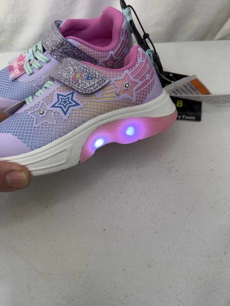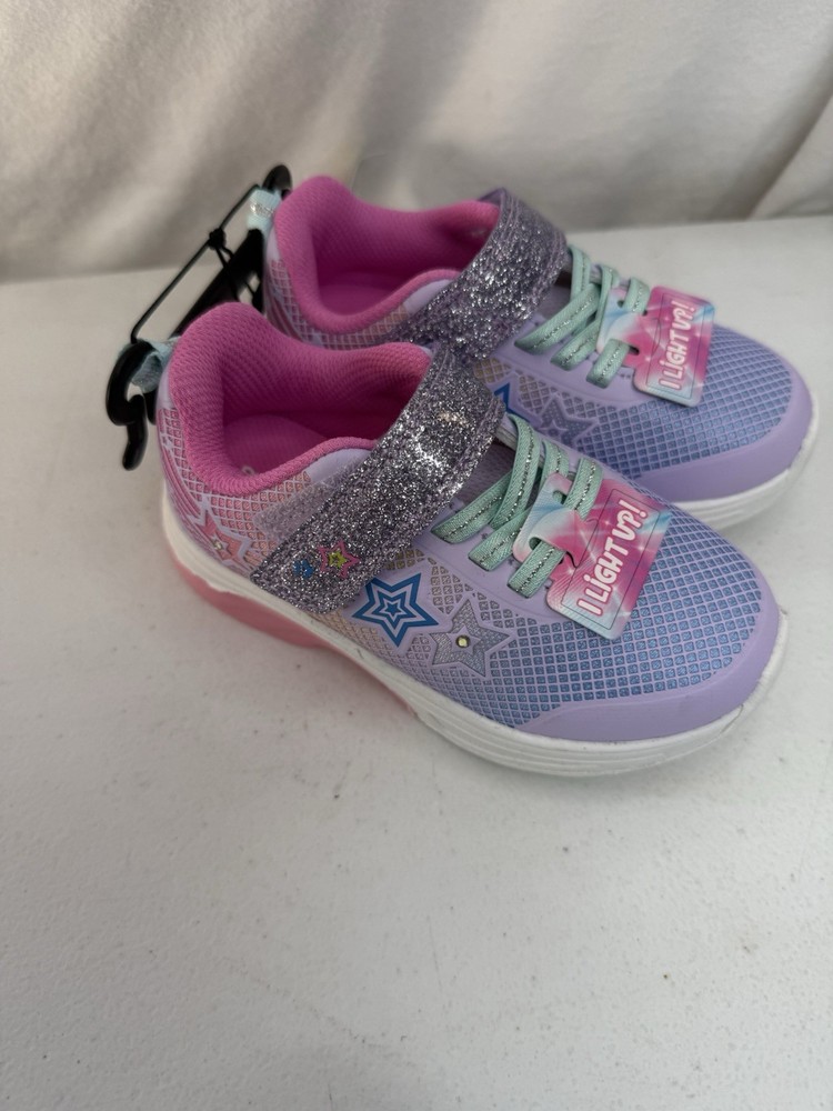 Athletic Works Girls Size 8 Star Light Up Tennis shoe in Pink/Purple. These shoes are new , however, they have scuff/ dirt /lint on soles . Please see all pictures. (R2)