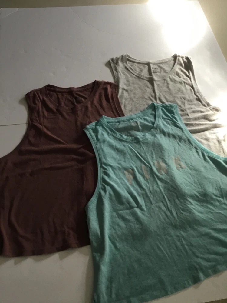 Lot of 3 shirts by PINK. Green,gray,pink. Small