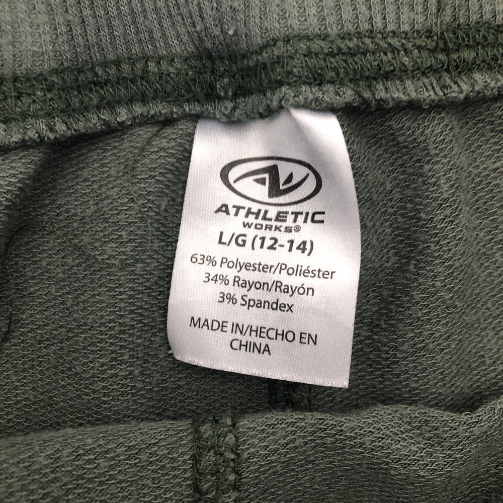 These Athletic Works women's large army green casual athletic shorts are perfect for yoga, walking, running, and other activities. Made from a comfortable polyester blend fabric, these relaxed-fit shorts feature an elastic waist and are machine washable for easy care. The solid green color and army theme make them a versatile and stylish option for the summer, fall, and spring seasons. With a 1-inch inseam and a 32-inch waist size, these shorts offer both style and functionality for your active lifestyle.