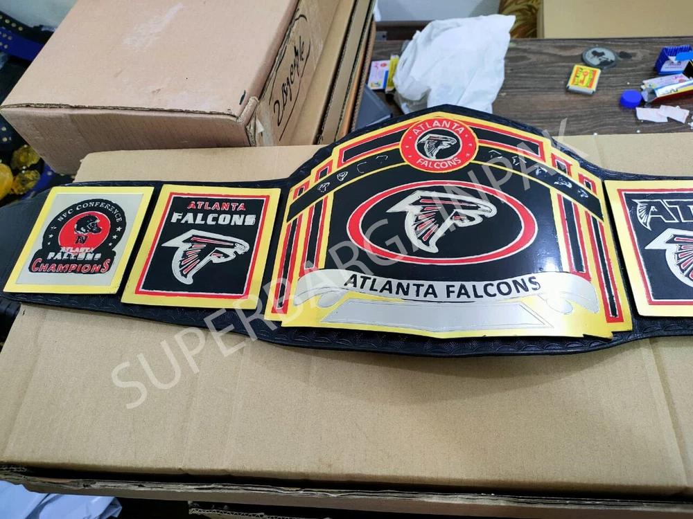 Welcome to our shop ------------------------------------------- We are specialist in manufacturing handmade products:: Our wide range of products include: >>>>Championship Belts WWE | WWF | AEW | UFC | WBC | WCW Product Description *** New Atlanta Falcons Championship Brass 2mm Belt *** Plate Metal: Brass (Zinc available on request with additional cost) Strap: 100% Leather Largest Waist Size: Fits upto 46'' Belt Length: ~50" Weight: 4.17 lbs | 2.01 Kg Plate Thickness: 2mm (4mm Version available on demand with additional cost) ::The belt is well crafted and manufactured to meet the quality demands of fans:: Get your hands on this marvelous piece now! Note: If you need further details kindly inbox us, we will try to be as responsive as possible. ------------------------------------------- Return Policy: Generally we don't have much complains on our products and we make sure to 100% satisfy our clients. We send the product in well Bubble Wrapped packaging so there is highly unlike chance of getting damaged item. In case there is a damage, we will try to give partial refund or you can ask for full refund within 30 days after returning the belt to origin. NOTE: 1. If you have placed the order by mistake or you have purchased a wrong item then we are not going to refund that. 2. Buyer will pay the shipping fee of returning the belt. ------------------------------------------- Happy Shopping! :)