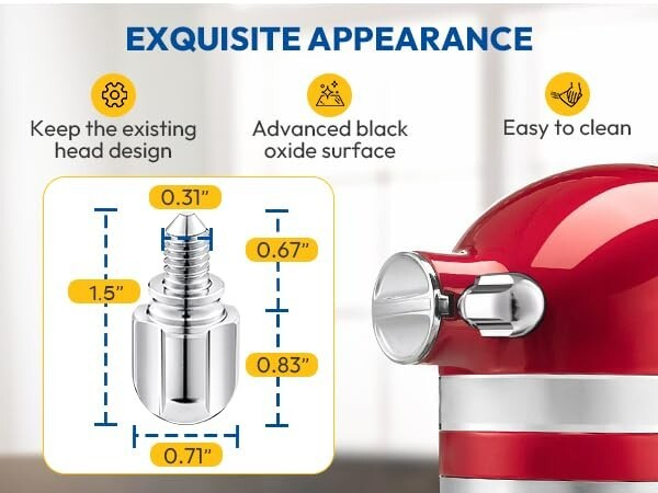 Attachment Knob Thumb 1.5‘’ Short Screw Fit for Kitchenaid Mixers with Screw-On About this item; KEEP NICE APPEARANCE. ANONEMOTO short upgraded mixer parts fit into the mixer screw holes without exposing excess length for a better look. Ensures safety and stability for your cap hub, slicer, chopper, grinder, pasta maker, and other attachments STURDY STRUCTURE. The mixer attachment short screws are made of high-quality 6061 aluminum, which is non-fading, anti-rust, and anti-corrosion. Featuring an integrated screw head and rod structure, the screw offers superior strength and durability compared to the original plastic screw head and is not afraid of breaking EXQUISITE APPEARANCE&EASY TO CLEAN. The mixer knob replacement fit for KitchenAid Mixers keeps the original screw head design with a glossy chrome surface, enhancing your mixer's appearance. Compared to other knurled design, this mixer part replacement has a smoother surface with minimal gaps, making it easier to clean and less likely to trap dirt FITMENT: This attachment knob thumb short screws are fit for KitchenAid Mixers with screw-on hub attachment cap. You can choose our long screws if you own mixer with flip-top hub attachment cap PACKAGE INCLUDED: 1 screw. Stylish and high-quality, it's a perfect present for family and friends who already own a stand mixer fit for KitchenAid
