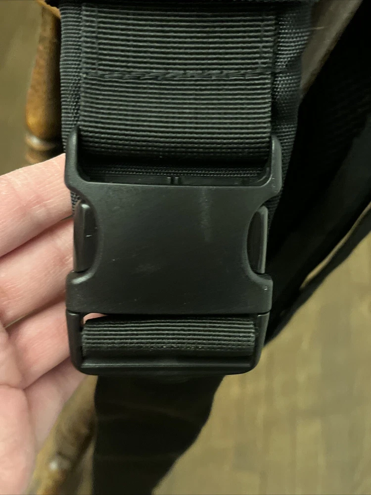 Bag in like-new condition. Small chip on the bottom of metal on front. Very clean. See photos. All zippers work smoothly. No dirt to be found.