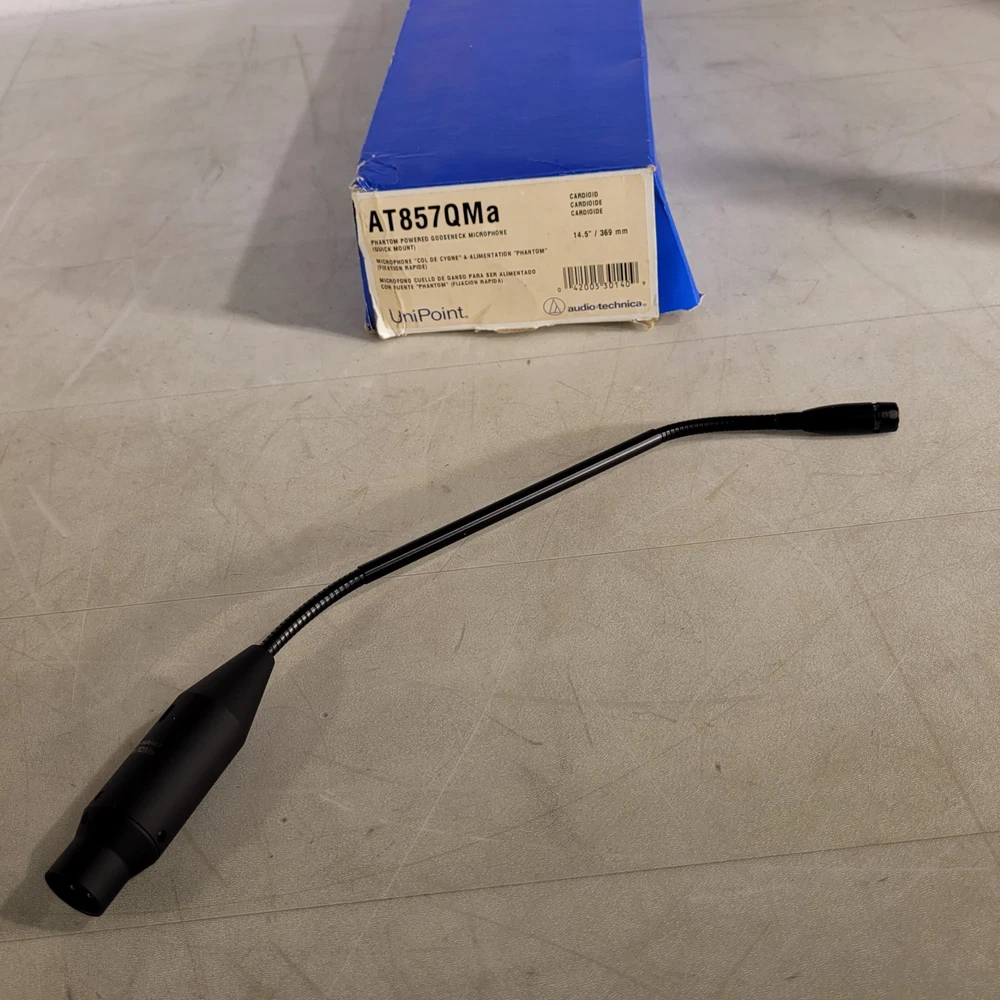 Audio Technica AT857QMa Phantom Powered Gooseneck Microphone Cardioid 14.5" Used see photos Test thoroughly before putting into use. SJ