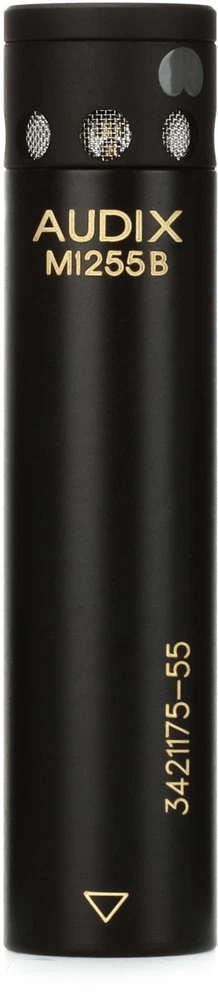 Near or Far, This Mic Is a Star No matter how you choose to use it, the Audix M1255B miniature high-output cardioid condenser microphone is one fine piece of gear in any galaxy! Specifically designed with high sensitivity to capture sound sources from a distance, the Audix M1255B works exceptionally well as an audience mic for use with in-ear monitors, a room mic for studio applications, and a hanging choir mic, among other applications. It retains fully integrated miniaturized preamp circuitry with extremely low self-noise, a high SPL handling capability, and it’s immune to RF interference from cell phones or GSM devices. Plus, the Audix M1255B’s discreet profile makes it nearly invisible — and it doesn’t require an external power adapter. The M1255B makes a tremendous close mic as well, with many optional accessories such as drum rim mounts, clips for saxes and trumpets, and more. Part of Audix’s The Sweetwater is an Authorized Audix Dealer Genuine Open Box Item Sweetwater's 2-year warranty Audix M1255B Miniature High-output Cardioid Condenser Mini Cardioid Condenser Mic with Fully Integrated Preamp and High Sensitivity for Distance Miking - Black Near or Far, This Mic Is a Star No matter how you choose to use it, the Audix M1255B miniature high-output cardioid condenser microphone is one fine piece of gear in any galaxy! Specifically designed with high sensitivity to capture sound sources from a distance, the Audix M1255B works exceptionally well as an audience mic for use with in-ear monitors, a room mic for studio applications, and a hanging choir mic, among other applications. It retains fully integrated miniaturized preamp circuitry with extremely low self-noise, a high SPL handling capability, and it’s immune to RF interference from cell phones or GSM devices. Plus, the Audix M1255B’s discreet profile makes it nearly invisible — and it doesn’t require an external power adapter. The M1255B makes a tremendous close mic as well, with many optional accessories such as drum rim mounts, clips for saxes and trumpets, and more. Part of Audix’s The Micros series, the Audix M1255B is a mini mic with huge flexibility. The Micros series: macro performance “How can we pack optimum performance into a miniature size?” Steered by this question, Audix leveraged its award-winning SCX series circuit and microphone topology in a bid to design the world’s smallest fully integrated condenser mics. Micros series mics might be diminutive, but they offer gigantic value and features, including a balanced signal, low self-noise, high dynamic range, RF immunity, and a detachable cable. The resulting sound and functionality have greatly impressed many of us here at Sweetwater, and we’re sure these mighty little mics will also leave a big impression on you. Audix M1255B Miniature High-output Cardioid Condenser Features: Mini condenser mic with high sensitivity for miking from a distance Lightweight, discreet profile Miniaturized preamp circuitry No need for an external power adapter 12mm gold vapor diaphragm Immune to RF interference from cell phones and GSM devices Low inherent self-noise with high SPL handling capability Also available with hypercardioid, omni, or shotgun capsules Many optional clips and accessories are also available, including micro booms, drum rim mounts, goosenecks, and more Black and white color options Designed, assembled, and tested in Oregon 3-year warranty Specification Detail Microphone Type Condenser Polar Pattern High-output Cardioid Diaphragm Size 0.47" (12mm) Frequency Response 50Hz-19kHz Max SPL 130 dB SPL Signal to Noise Ratio 73 dB (A weighted) Self Noise 21 dB (A weighted) Output Impedance 150 ohms Color Black Connector Mini-XLR Cable Length 25 ft. Dimensions 2.1" (length) RETURN INFORMATION We want you to be completely happy with your purchase from Sweetwater. If you are not satisfied with your product, you may return it for a refund of the purchase price within 30 days. If your purchase was eligible for Free Shipping, the shipping cost will be deducted from your credit or refund. Returns must be in the complete and original packaging with all accessories and complete documentation (Owner's Manual, warranty card, quick start guides, etc.), show no signs of wear or use, and include a Return Authorization number or be subject to a restocking fee.