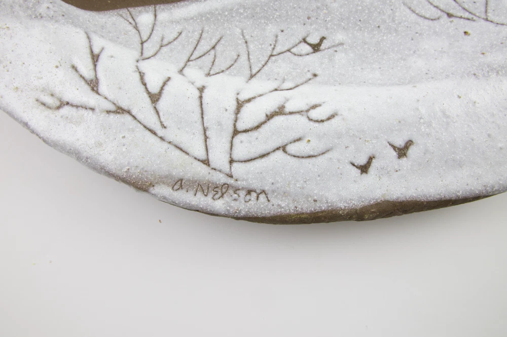 For your consideration.... Vintage, signed A. Nelson studio art pottery plate/platter Our research discovered that this was made by Audrey Nelson (1928-2012) of Goshen, NH Audrey ran the Nelson Crafts Studio where she made her famous "Weed People" & other types of pottery This very heavy piece measures approximately. 14" across Signed on the bottom The last picture you see with her signature is actually from one of her Weed People that we found in our research process Please click (& double click) on photos to enlarge. Up to 24 are usually available. Condition & Observations : Please view our other listings for more . Combined shipping is always available at a discount when you Continue Shopping With Seller & use the Shopping Cart. Pictures & videos are also part of the item description & condition Colors of the item may vary depending on the device you are using Please note: A very generous discounted shipping rate has already been applied to this item & qualifies for Free Insurance & Free Tracking. No coupon or code required! Commonly asked Q's & A's regarding Shipping Charges, Free Local Pick Up, Return Policies, Damaged Items & W arranties, can be located in the "About" section of our Storefront as well as under "Ask Seller a Question". If your answer can't be found, please don't hesitate to contact us. We are always happy to help before, during & after the sale.