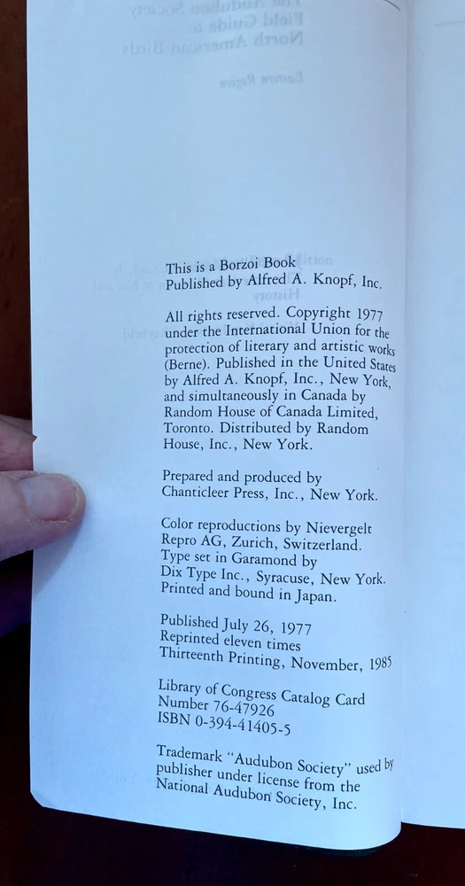 Audubon Society Field Guide to North American Birds Eastern Region by John Bull and John Farrand Jr. 1977 Edition