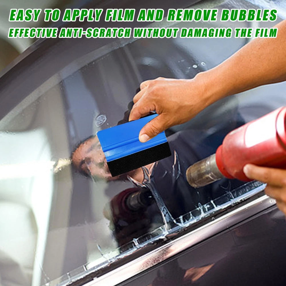 Speification: Material: Plastic Color: Green, Blue, Red Quantity: 2 PCS Weight: 0.34 lb Small Squeegee Size: 5.5 x 5.1 inches Felt Squeegee Size: 3.9 x 2.9 inches Fit Type: Most Cars More details of this window tint kit: -The squeegee for vinyl is beautiful and practical. -Easily removing decals yet surface-friendly, easily replaced. -Double edged felt squeegee, economical yet durable, sharp yet flexible. 【Good Material】: The tool kit contaims rubber squeegee and felt squeegee. This felt squeegee is made of high-quality polyethylene with felt, ensuring its durability for long-term use. The rubber squeegee is made of thermoplastic rubber stripe and plastic handle. A non-slip design has been added to the handle, and the rubber adhesive strip is tough, bendable and not easy to break. 【Smooth & Scratch Free】: The versatile felt squeegee, designed for vinyl applications, excels at tasks like water removal, dust cleaning, and air bubble elimination, ensuring a flawless and scratch-free window tinting installation. Felt edge squeegee made of high quality fabric felt edges,is greatly reduce scratches and marks on the surface on vinyl surface when install. 【Multi Function】: This multi-function window tint and vinyl wrap kit is perfect for a wide range of projects. Whether you're working on carbon fiber vinyl wrap, glass film installation, window tinting, wallpaper smoothing, or decals, this car wrap kit is suitable for various applications. From homes and garages to offices and warehouses, it is a good tool kit for any setting. 【Easy to Use】: These vinyl wrap tools are thoughtfully designed for easy operation and ensure exceptional results every time. Furthermore, its compact size and specialized design make navigating tight gaps and corners effortless. Whether you're tackling a professional project or embarking on a DIY endeavor, these tint tools guarantee the success of your smoothing tasks. 【Wide Application】: Portable and versatile, it can be used not only on window film but also as an auxiliary tool on any smooth surface, such as wall decals, posters, paint protection film, wallpaper installation, decals, and wrap film. Aditionally, it can be used as a water wiper for glass.
