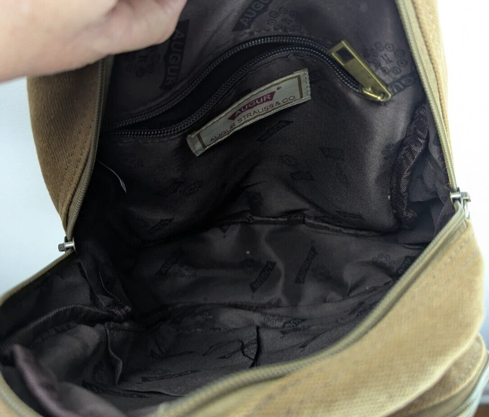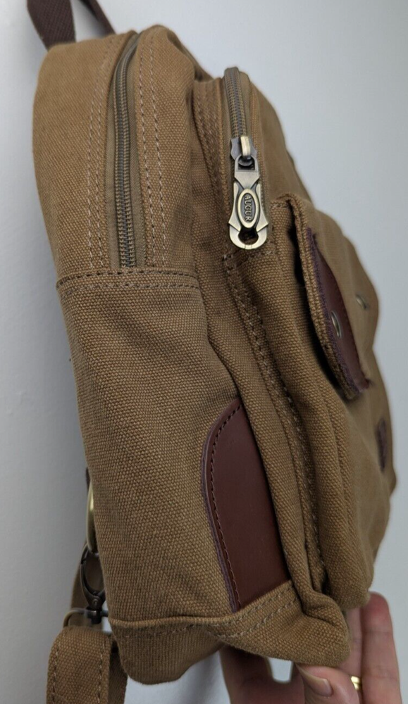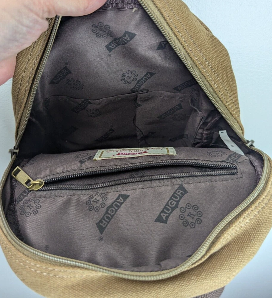 Augur Strauss & Co. Womans Brown Canvas Sling Bag Backpack utility Purse Outdoor, In Great Condition! This is a smaller sling bag/backpack, SEE ALL PHOTOS! Any questions please ask, Thank You!